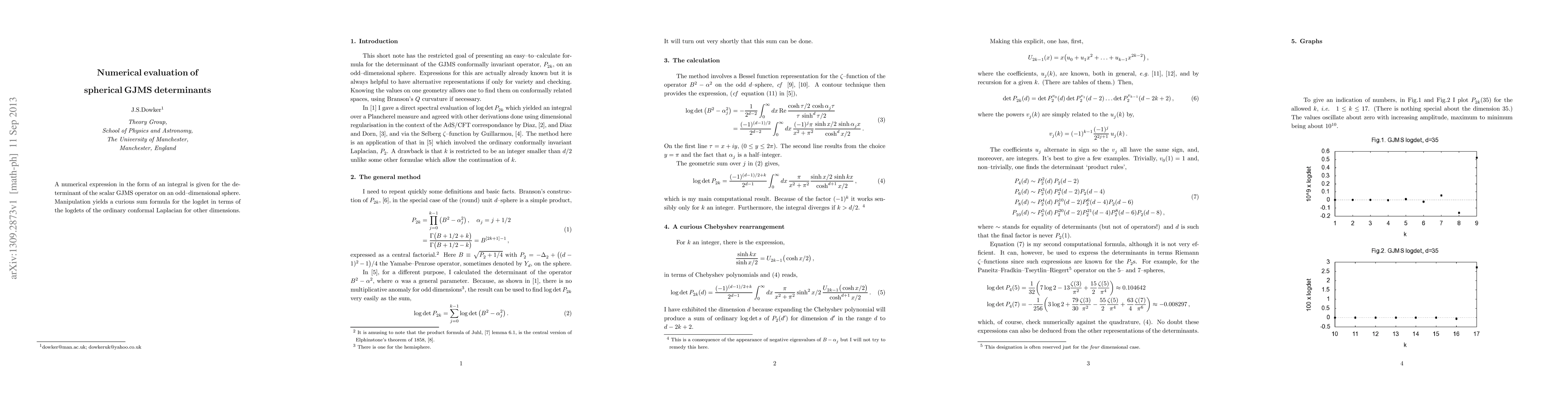 Researchers developed a numerical expression for the determinant of the scalar GJMS operator on an odd-dimensional sphere, revealing a connection to the logdet of conformal Laplacians in other dimensions.