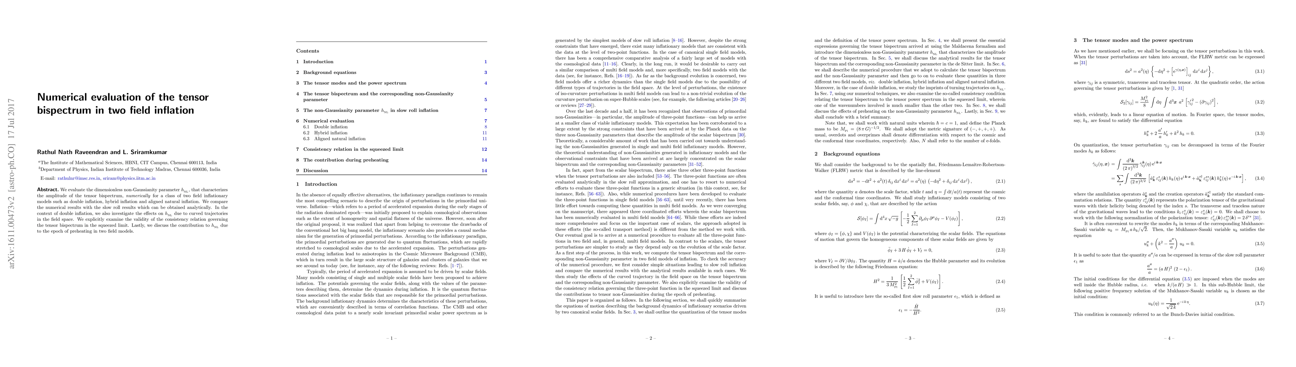 This paper numerically evaluates the tensor bispectrum's non-Gaussianity parameter $h_{_{\rm NL}}$ in various two-field inflationary models, comparing results with analytical slow roll approximations. It also examines the impact of curved trajectories and preheating epochs on $h_{_{\rm NL}}$.