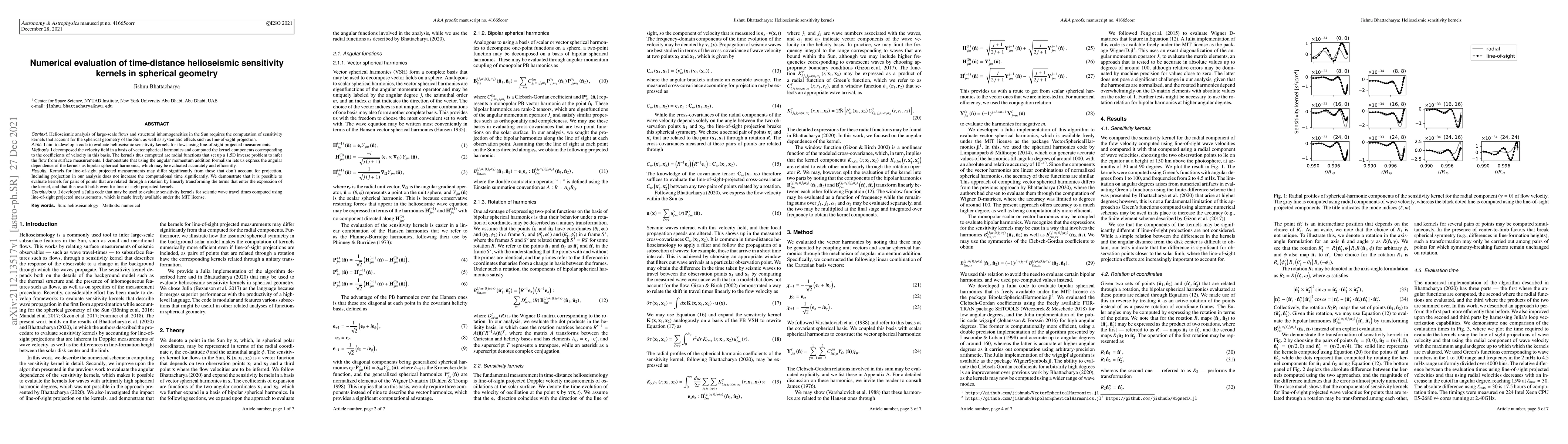 Context: Helioseismic analysis of large-scale flows and structural inhomogeneities in the Sun requires the computation of sensitivity kernels that account for the spherical geometry of the Sun, as well as systematic effects such as line-of-sight projection. Aim: I aim to develop a code to evaluate helioseismic sensitivity kernels for flows using line-of-sight projected measurements. Methods: I decomposed the velocity field in a basis of vector spherical harmonics and computed the kernel components corresponding to the coefficients of velocity in this basis. The kernels thus computed are radial functions that set up a 1.5D inverse problem to infer the flow from surface measurements. I demonstrate that using the angular momentum addition formalism lets us express the angular dependence of the kernels as bipolar spherical harmonics, which may be evaluated accurately and efficiently. Results: Kernels for line-of-sight projected measurements may differ significantly from those that don't account for projection. Including projection in our analysis does not increase the computational time significantly. We demonstrate that it is possible to evaluate kernels for pairs of points that are related through a rotation by linearly transforming the terms that enter the expression of the kernel, and that this result holds even for line-of-sight projected kernels. Conclusion: I developed a Julia code that may be used to evaluate sensitivity kernels for seismic wave travel times computed using line-of-sight projected measurements, which is made freely available under the MIT license.
