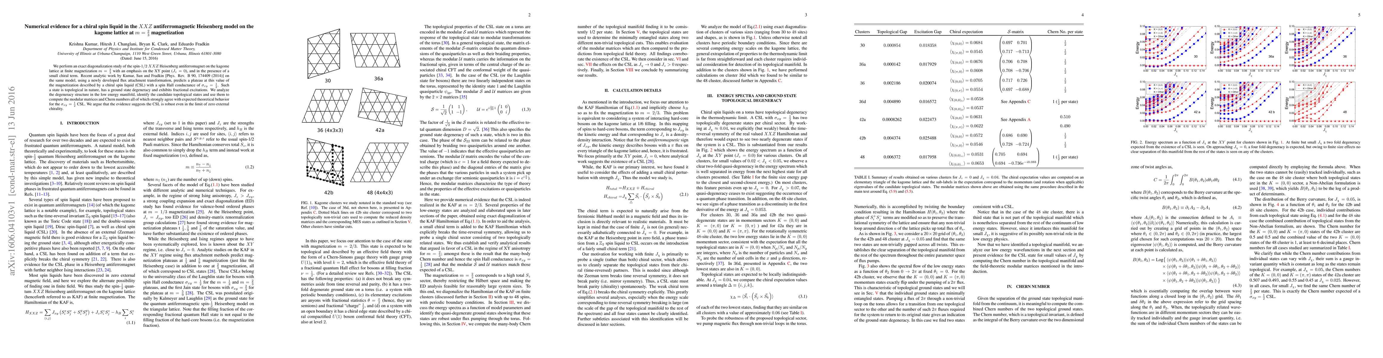 This study uses exact diagonalization to investigate the spin-$1/2$ XXZ Heisenberg antiferromagnet on the kagome lattice at $m = \frac{2}{3}$ magnetization, finding strong numerical evidence for a chiral spin liquid (CSL) state characterized by a spin Hall conductance of $\sigma_{xy} = \frac{1}{2}$. The results align well with theoretical predictions for topological properties of the CSL.