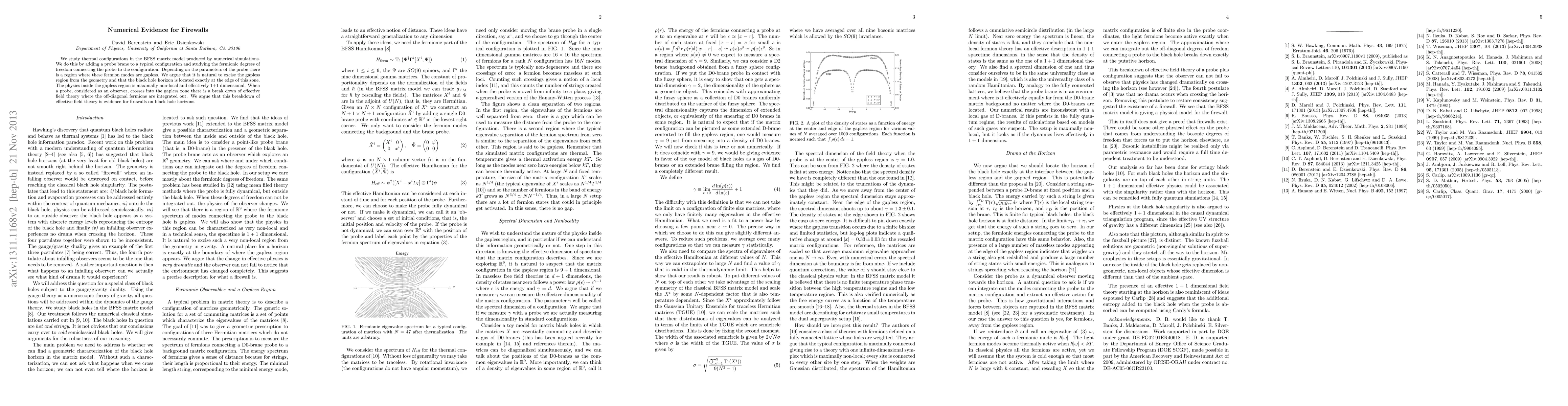 We study thermal configurations in the BFSS matrix model produced by numerical simulations. We do this by adding a probe brane to a typical configuration and studying the fermionic degrees of freedom connecting the probe to the configuration. Depending on the parameters of the probe there is a region where these fermion modes are gapless. We argue that it is natural to excise the gapless region from the geometry and that the black hole horizon is located exactly at the edge of this zone. The physics inside the gapless region is maximally non-local and effectively 1+1 dimensional. When a probe, considered as an observer, crosses into the gapless zone there is a break down of effective field theory where the off-diagonal fermions are integrated out. We argue that this breakdown of effective field theory is evidence for firewalls on black hole horizons.