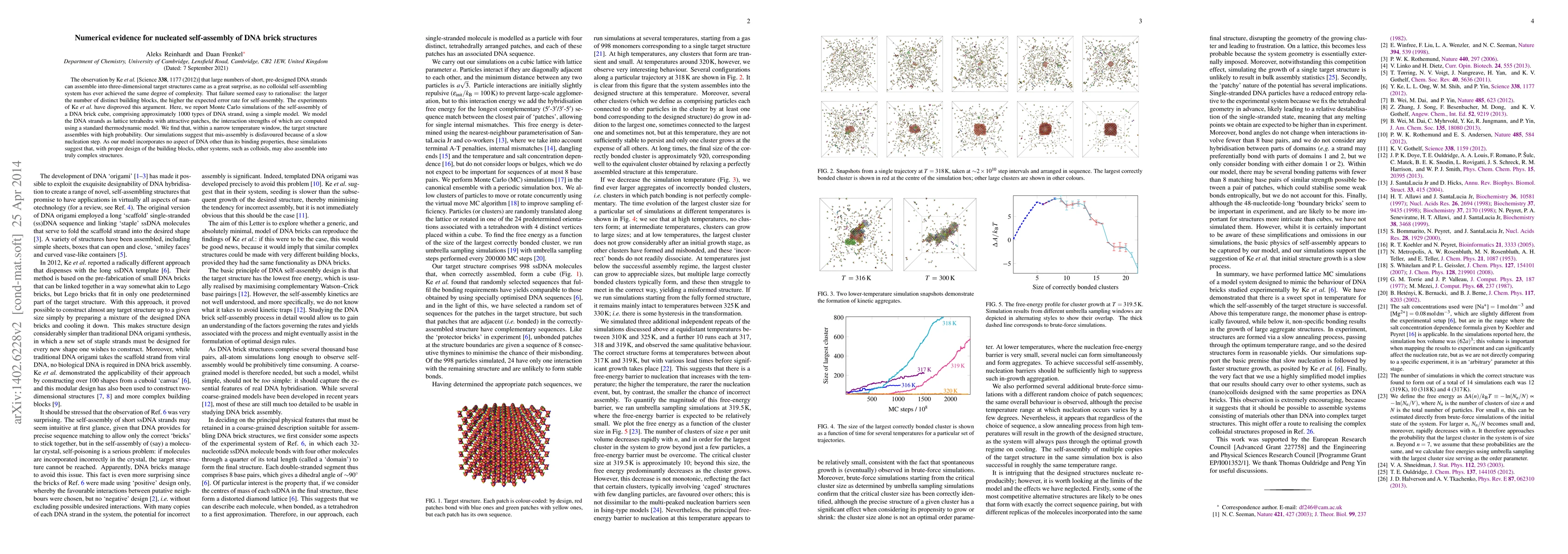 This paper reports Monte Carlo simulations demonstrating the successful self-assembly of a DNA brick cube with nearly 1000 types of DNA strands, refuting the notion that complexity increases error rates. The simulations suggest that a slow nucleation step disfavours mis-assembly, indicating that complex structures can form with proper design.