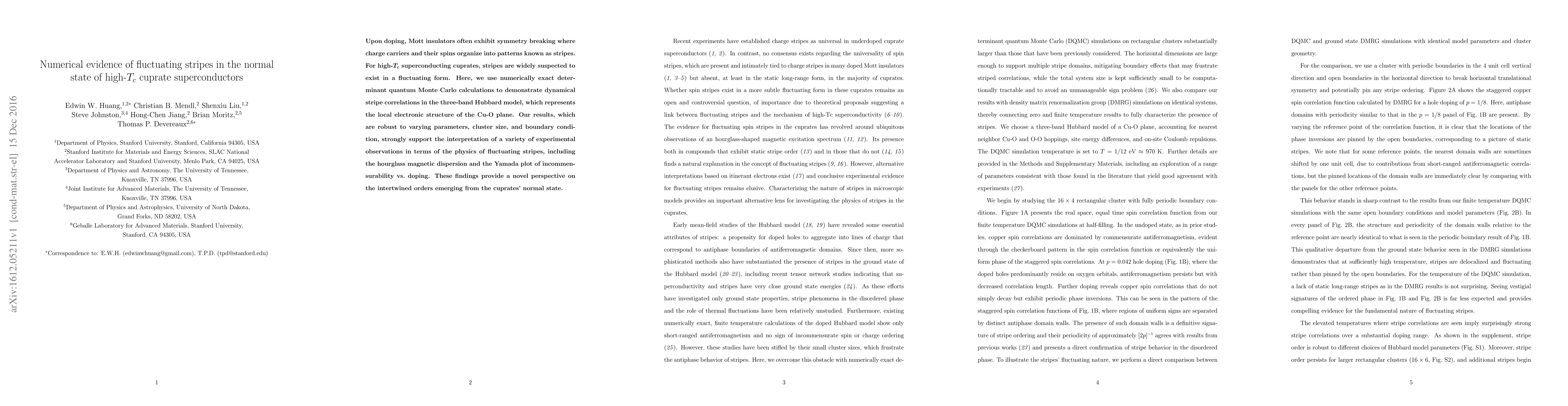 This study uses numerically exact calculations to show fluctuating stripe correlations in high-Tc cuprate superconductors, supporting the interpretation of experimental observations related to these patterns. The findings suggest that fluctuating stripes play a significant role in the normal state physics of these materials.