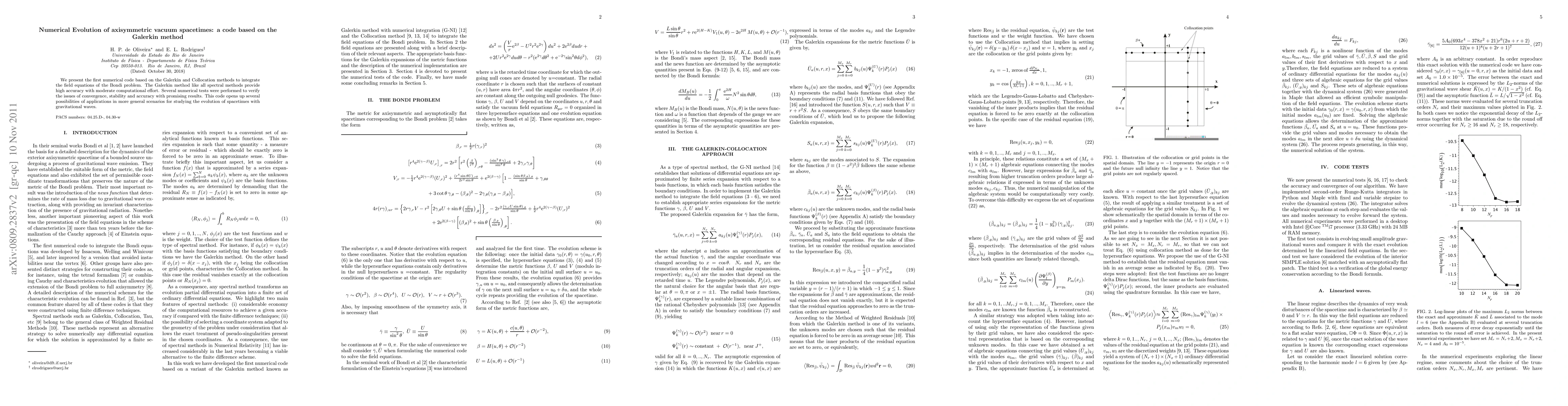 This paper introduces a numerical code based on the Galerkin method to solve the Bondi problem's field equations, demonstrating high accuracy and stability through rigorous tests. The code's success paves the way for broader applications in studying gravitational wave evolution in spacetimes.