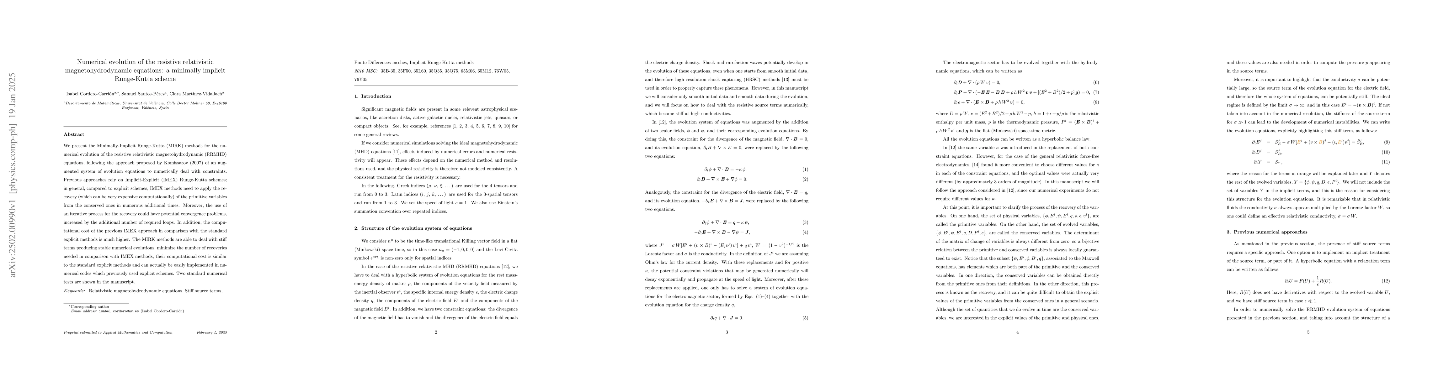 This paper introduces Minimally-Implicit Runge-Kutta (MIRK) methods for solving resistive relativistic magnetohydrodynamic (RRMHD) equations, offering a more efficient alternative to Implicit-Explicit (IMEX) schemes by reducing computational cost and minimizing the need for expensive variable recovery processes. The proposed MIRK methods achieve stable numerical evolutions comparable to explicit schemes.