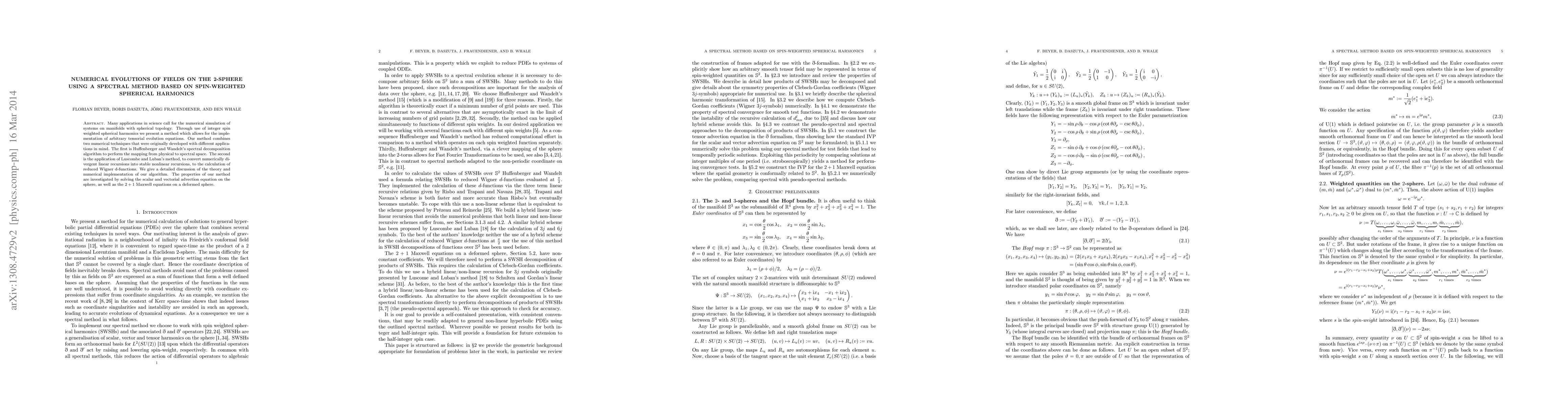 Many applications in science call for the numerical simulation of systems on manifolds with spherical topology. Through use of integer spin weighted spherical harmonics we present a method which allows for the implementation of arbitrary tensorial evolution equations. Our method combines two numerical techniques that were originally developed with different applications in mind. The first is Huffenberger and Wandelt's spectral decomposition algorithm to perform the mapping from physical to spectral space. The second is the application of Luscombe and Luban's method, to convert numerically divergent linear recursions into stable nonlinear recursions, to the calculation of reduced Wigner d-functions. We give a detailed discussion of the theory and numerical implementation of our algorithm. The properties of our method are investigated by solving the scalar and vectorial advection equation on the sphere, as well as the 2+1 Maxwell equations on a deformed sphere.