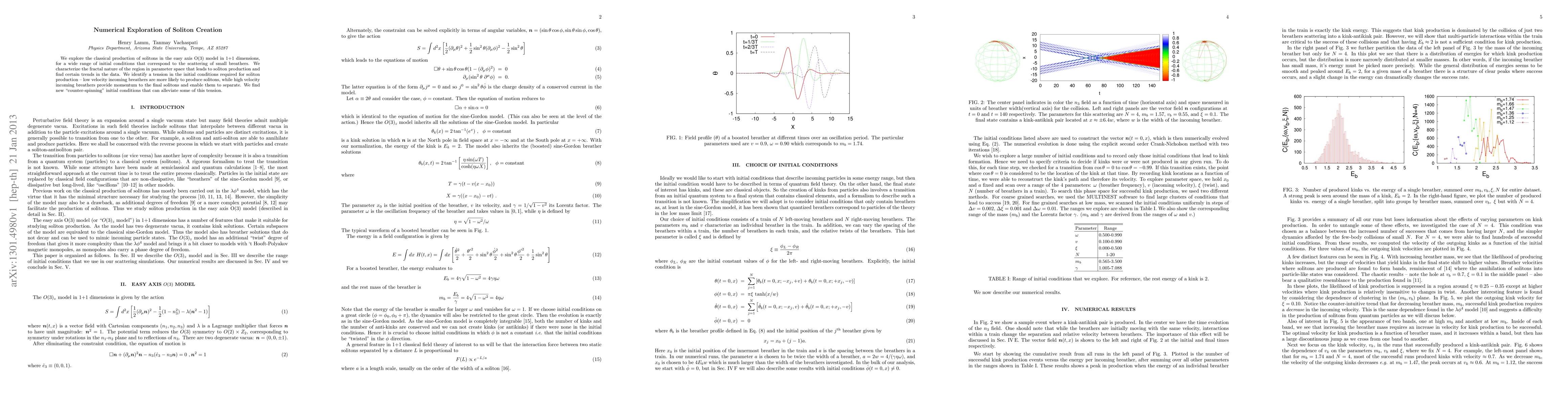 Researchers explored soliton creation in a 1+1 dimensional model, finding that low-velocity breathers create solitons while high-velocity ones provide momentum to the final solitons. They discovered new 'counter-spinning' initial conditions to alleviate tension in this process.