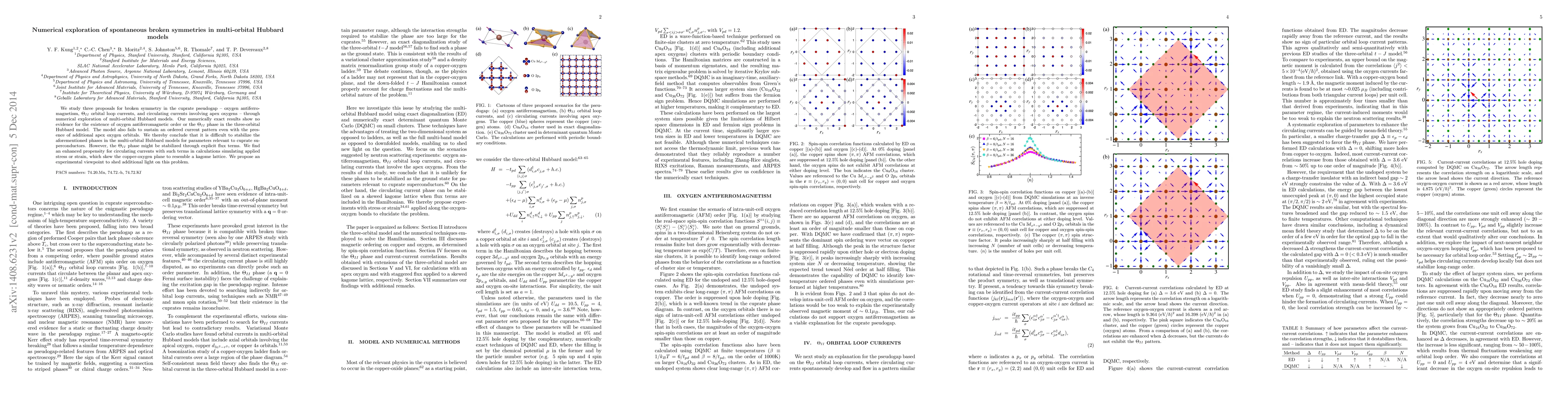 We study three proposals for broken symmetry in the cuprate pseudogap - oxygen antiferromagnetism, $\Theta_{II}$ orbital loop currents, and circulating currents involving apex oxygens - through numerical exploration of multi-orbital Hubbard models. Our numerically exact results show no evidence for the existence of oxygen antiferromagnetic order or the $\Theta_{II}$ phase in the three-orbital Hubbard model. The model also fails to sustain an ordered current pattern even with the presence of additional apex oxygen orbitals. We thereby conclude that it is difficult to stabilize the aforementioned phases in the multi-orbital Hubbard models for parameters relevant to cuprate superconductors. However, the $\Theta_{II}$ phase might be stabilized through explicit flux terms. We find an enhanced propensity for circulating currents with such terms in calculations simulating applied stress or strain, which skew the copper-oxygen plane to resemble a kagome lattice. We propose an experimental viewpoint to shed additional light on this problem.
