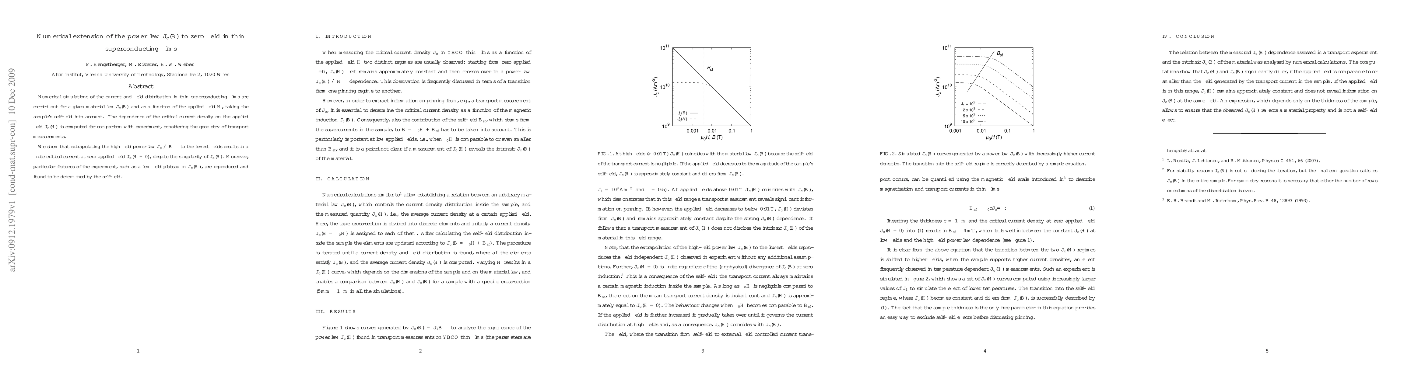Researchers found that a power law describing superconducting current density can extrapolate to zero field, producing a finite critical current, and explained experimental features with self-field effects.