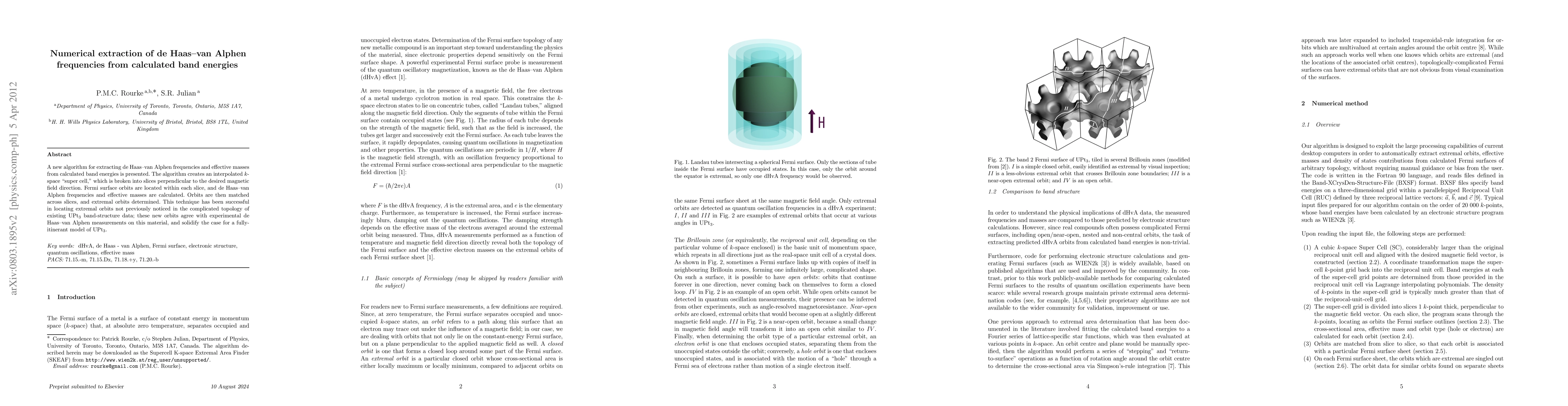 This paper introduces a novel algorithm for extracting de Haas-van Alphen frequencies and effective masses from calculated band energies by creating an interpolated k-space "super cell." The method successfully identifies new extremal orbits in UPt3, confirming the material's fully-itinerant electron model and aligning with experimental measurements.