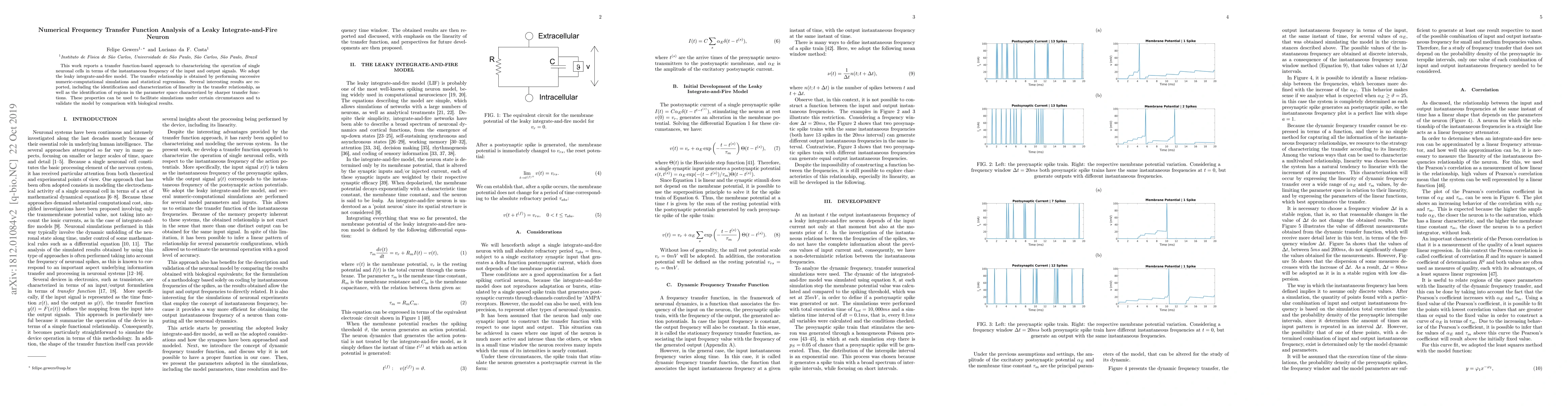 This study employs a transfer function approach to analyze the leaky integrate-and-fire neuron model, revealing linearity and identifying regions with sharper transfer functions through numerical simulations and statistical regressions. The findings can aid simulations and model validation against biological data.