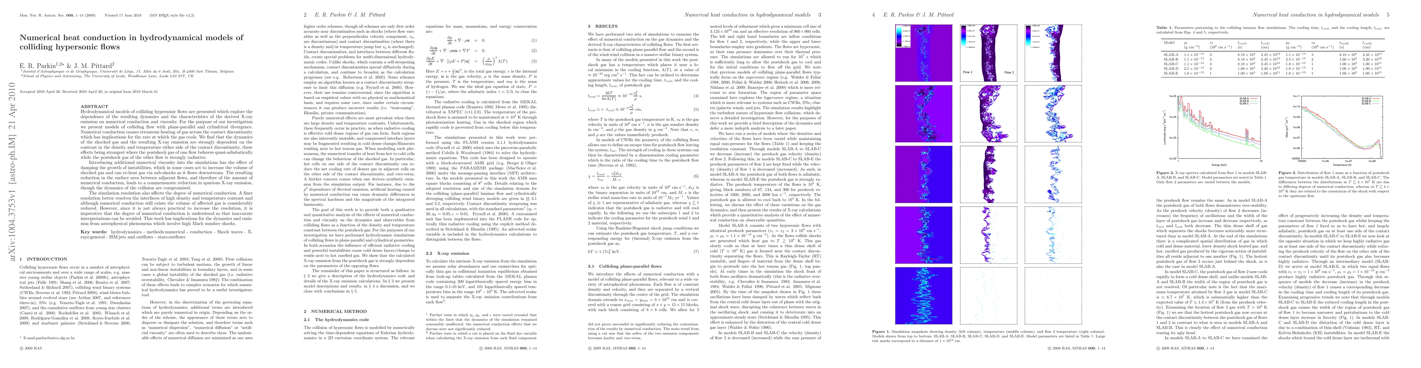 This research investigates the impact of numerical heat conduction and viscosity on colliding hypersonic flows, finding that numerical conduction erroneously heats gas and affects cooling rates, while additional viscosity dampens instabilities but alters dynamics. The study emphasizes the importance of understanding numerical conduction to avoid misinterpretations in astrophysical phenomena involving high-speed shocks.