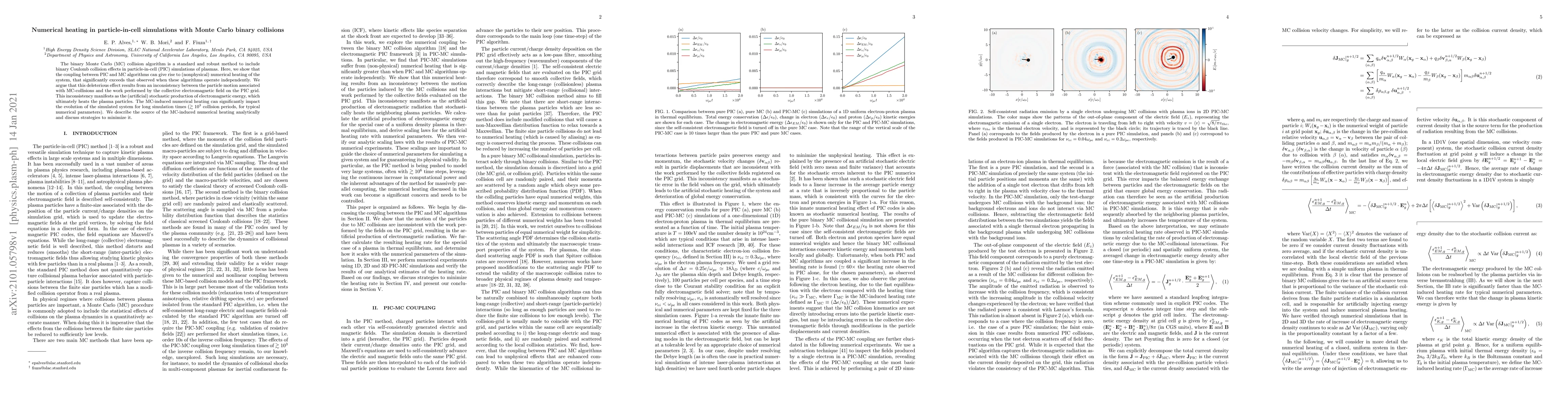 This paper identifies numerical heating in particle-in-cell simulations due to the coupling between Monte Carlo collision algorithms and PIC methods, attributing it to inconsistencies in particle motion and electromagnetic field interactions. Strategies to mitigate this artificial heating are proposed.