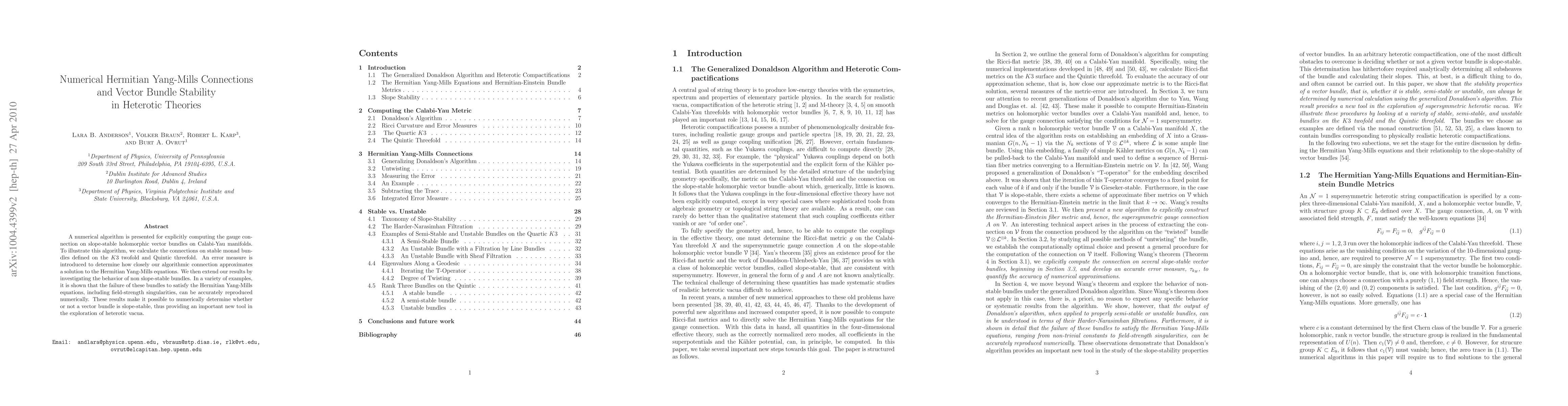 A numerical algorithm is presented for explicitly computing the gauge connection on slope-stable holomorphic vector bundles on Calabi-Yau manifolds. To illustrate this algorithm, we calculate the connections on stable monad bundles defined on the K3 twofold and Quintic threefold. An error measure is introduced to determine how closely our algorithmic connection approximates a solution to the Hermitian Yang-Mills equations. We then extend our results by investigating the behavior of non slope-stable bundles. In a variety of examples, it is shown that the failure of these bundles to satisfy the Hermitian Yang-Mills equations, including field-strength singularities, can be accurately reproduced numerically. These results make it possible to numerically determine whether or not a vector bundle is slope-stable, thus providing an important new tool in the exploration of heterotic vacua.