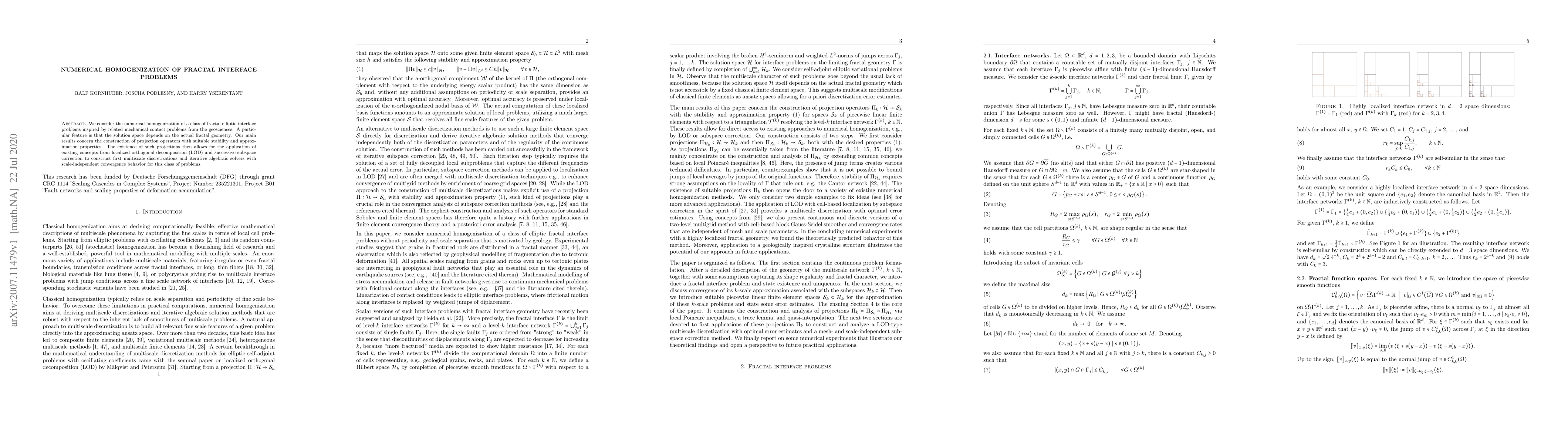 This paper develops numerical homogenization techniques for fractal interface problems, focusing on constructing projection operators that ensure stability and approximation. It leverages localized orthogonal decomposition and iterative solvers to achieve multiscale discretizations with scale-independent convergence.