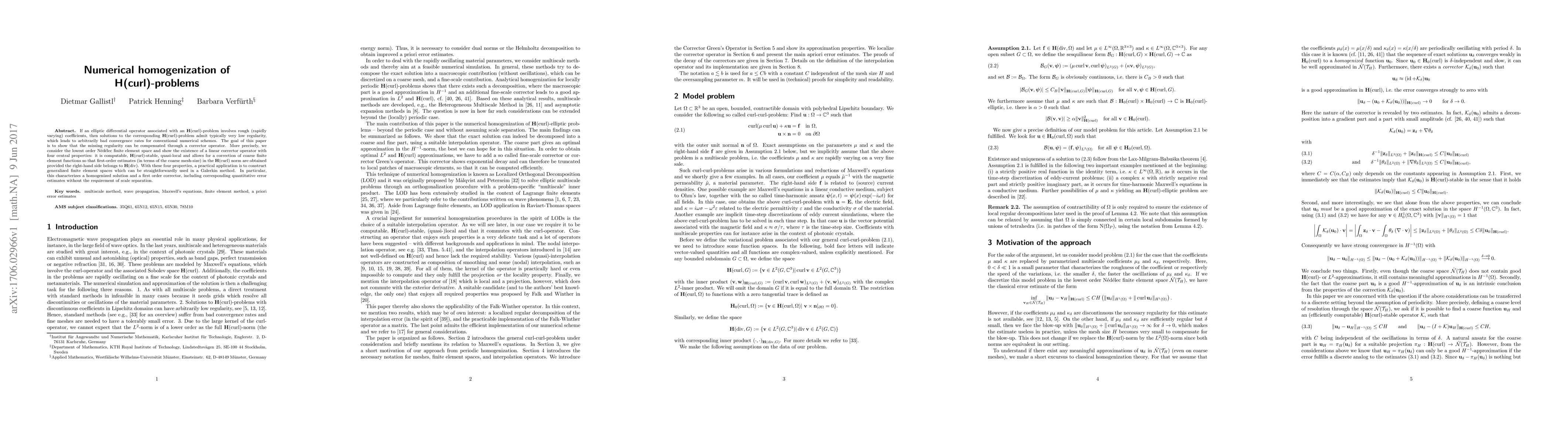 This paper proposes a method for numerically solving $\mathbf{H}(\mathrm{curl})$-problems with rough coefficients by introducing a computable corrector operator that compensates for the low regularity of solutions, enabling first-order convergence estimates in $\mathbf{H}(\mathrm{curl})$ norm for generalized finite element spaces. The corrector is $\mathbf{H}(\mathrm{curl})$-stable, quasi-local, and applicable without scale separation requirements.