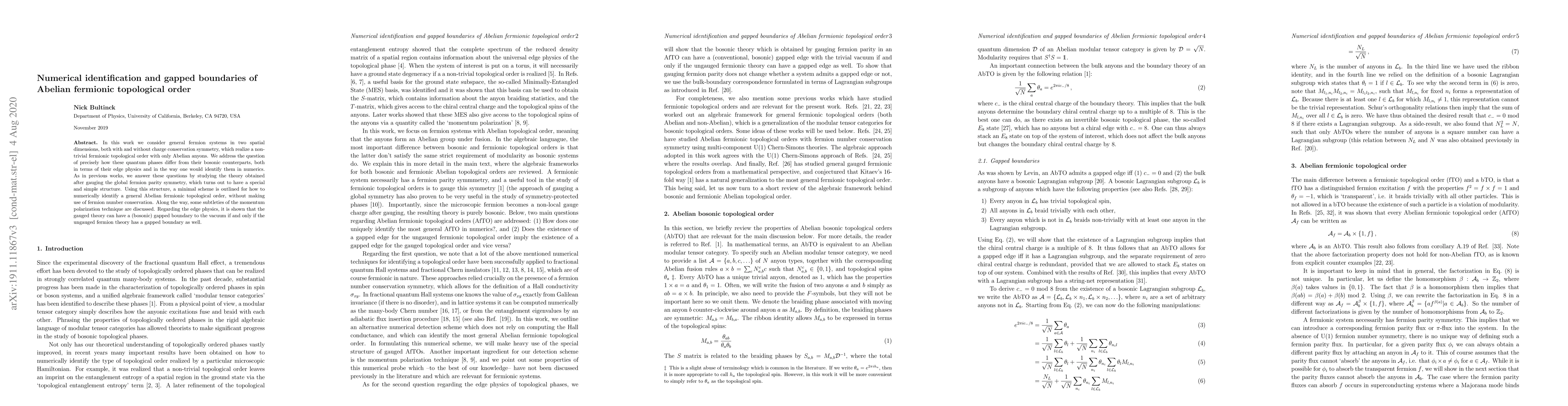 In this work we consider general fermion systems in two spatial dimensions, both with and without charge conservation symmetry, which realize a nontrivial fermionic topological order with only Abelian anyons. We address the question of precisely how these quantum phases differ from their bosonic counterparts, both in terms of their edge physics and in the way one would identify them in numerics. As in previous works, we answer these questions by studying the theory obtained after gauging the global fermion parity symmetry, which turns out to have a special and simple structure. Using this structure, a minimal scheme is outlined for how to numerically identify a general Abelian fermionic topological order, without making use of fermion number conservation. Along the way, some subtleties of the momentum polarization technique are discussed. Regarding the edge physics, it is shown that the gauged theory can have a (bosonic) gapped boundary to the vacuum if and only if the ungauged fermion theory has a gapped boundary as well.