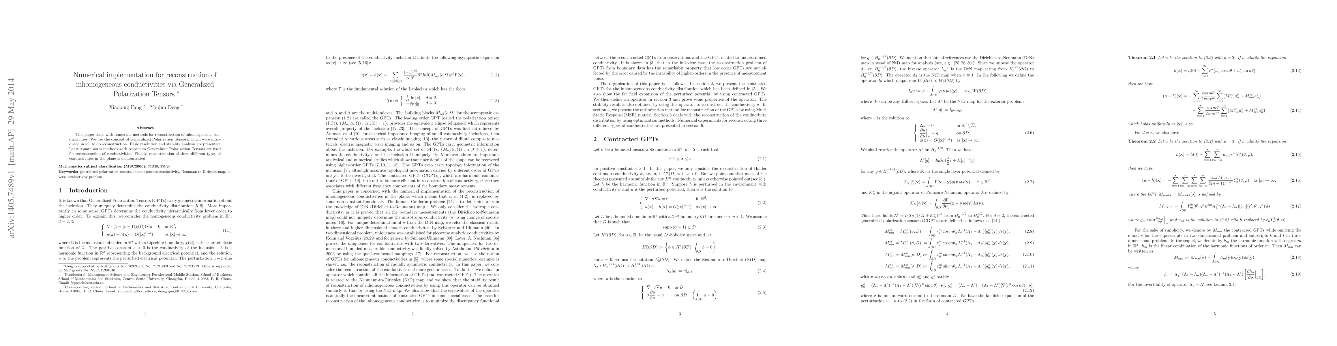 This paper presents numerical methods for reconstructing inhomogeneous conductivities using Generalized Polarization Tensors, demonstrating least square norm methods and stability analysis, and showcasing reconstructions of three different types of conductivities in a planar setting.