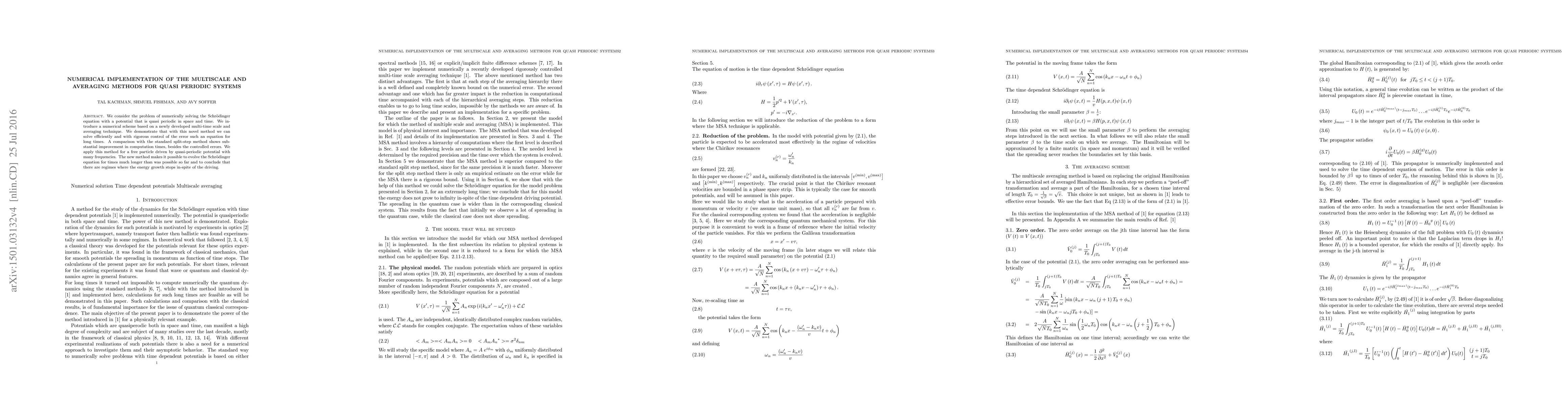 We consider the problem of numerically solving the Schr\"odinger equation with a potential that is quasi periodic in space and time. We introduce a numerical scheme based on a newly developed multi-time scale and averaging technique. We demonstrate that with this novel method we can solve efficiently and with rigorous control of the error such an equation for long times. A comparison with the standard split-step method shows substantial improvement in computation times, besides the controlled errors. We apply this method for a free particle driven by quasi-periodic potential with many frequencies. The new method makes it possible to evolve the Schrodinger equation for times much longer than was possible so far and to conclude that there are regimes where the energy growth stops in-spite of the driving.