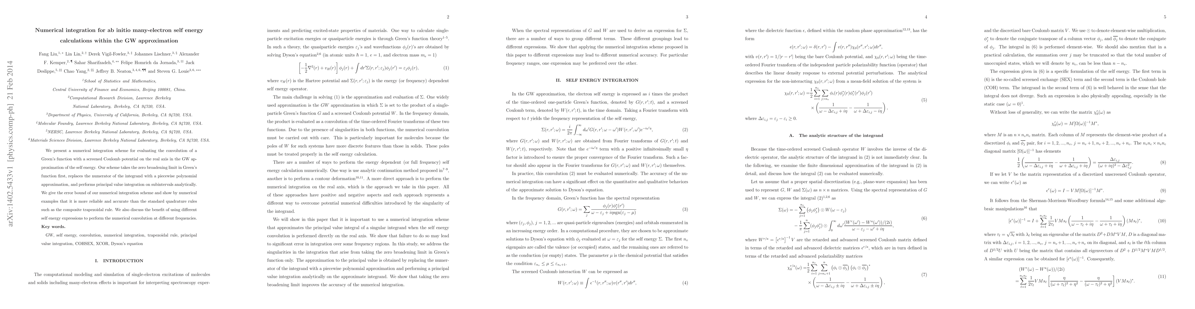 We present a numerical integration scheme for evaluating the convolution of a Green's function with a screened Coulomb potential on the real axis in the GW approximation of the self energy. Our scheme takes the zero broadening limit in Green's function first, replaces the numerator of the integrand with a piecewise polynomial approximation, and performs principal value integration on subintervals analytically. We give the error bound of our numerical integration scheme and show by numerical examples that it is more reliable and accurate than the standard quadrature rules such as the composite trapezoidal rule. We also discuss the benefit of using different self energy expressions to perform the numerical convolution at different frequencies.