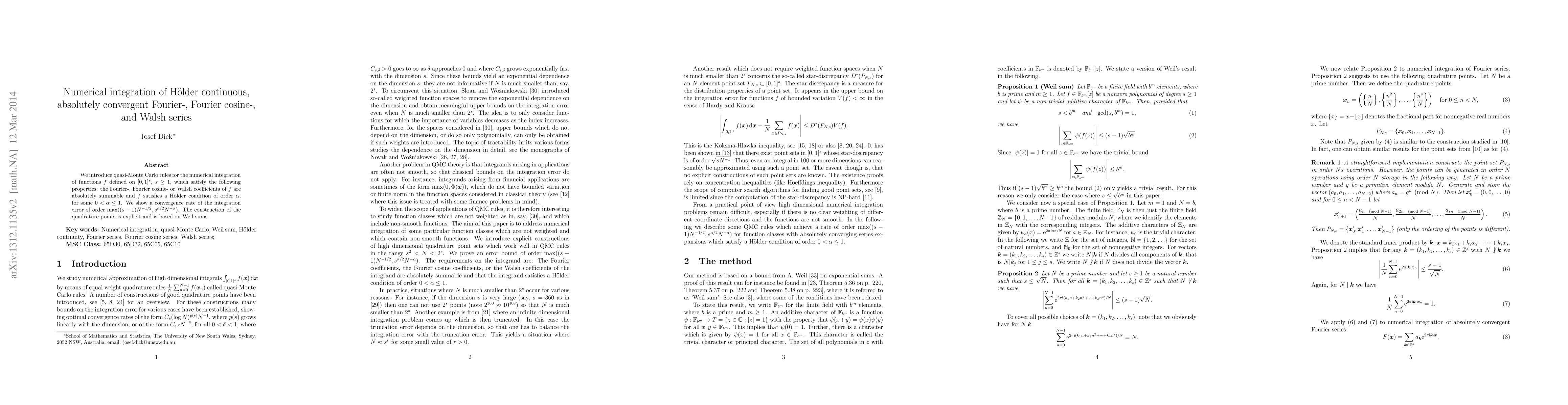 This paper proposes quasi-Monte Carlo rules for numerically integrating functions with absolutely summable Fourier-like coefficients and H\"older continuity, achieving an error rate of $\max((s-1) N^{-1/2}, s^{\alpha/2} N^{-\alpha})$. The quadrature points are explicitly constructed using Weil sums.