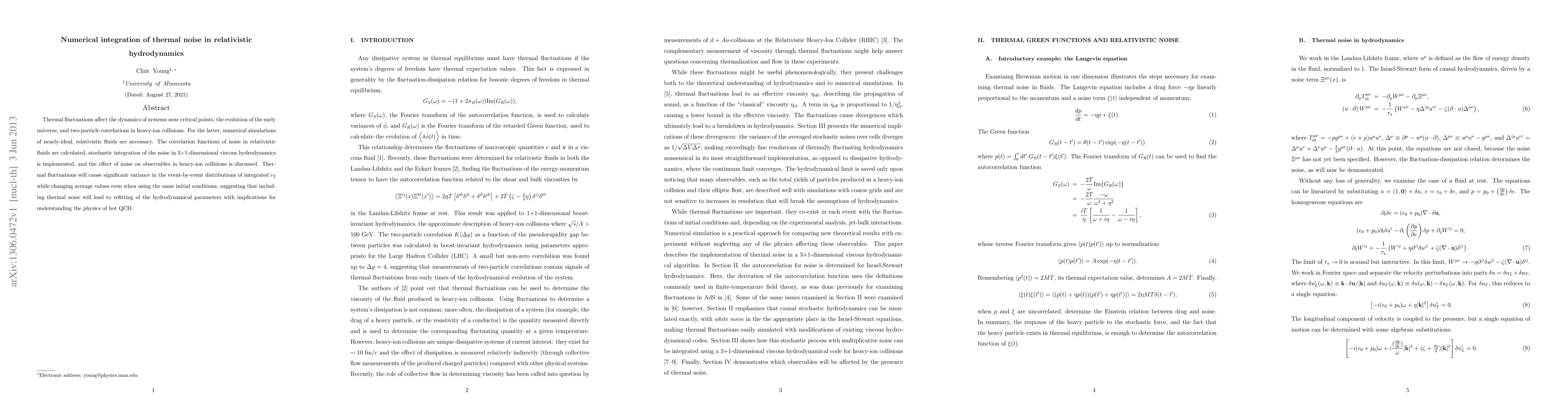 Thermal fluctuations affect the dynamics of systems near critical points, the evolution of the early universe, and two-particle correlations in heavy-ion collisions. For the latter, numerical simulations of nearly-ideal, relativistic fluids are necessary. The correlation functions of noise in relativistic fluids are calculated, stochastic integration of the noise in 3+1-dimensional viscous hydrodynamics is implemented, and the effect of noise on observables in heavy-ion collisions is discussed. Thermal fluctuations will cause significant variance in the event-by-event distributions of integrated v2 while changing average values even when using the same initial conditions, suggesting that including thermal noise will lead to refitting of the hydrodynamical parameters with implications for understanding the physics of hot QCD.