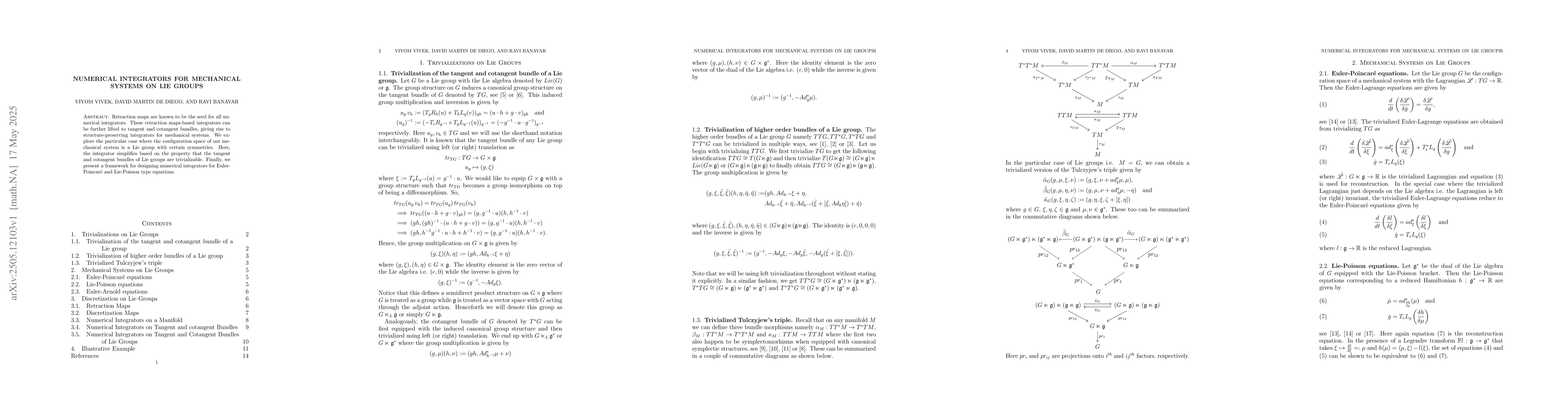 The paper explores numerical integrators for mechanical systems on Lie groups, utilizing retraction maps and their liftings to tangent and cotangent bundles, leading to structure-preserving integrators.