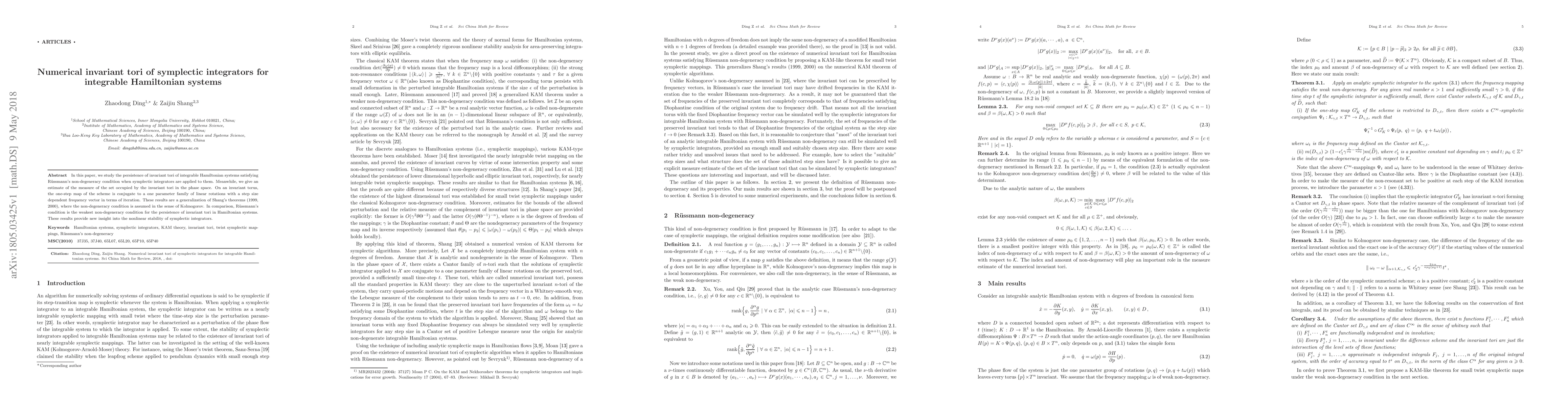 This paper investigates the persistence of invariant tori in integrable Hamiltonian systems under symplectic integrators, estimating the measure of the phase space occupied by these tori. It extends Shang's theorems by applying R{\"u}ssmann's non-degeneracy condition, offering new insights into the nonlinear stability of symplectic integrators.