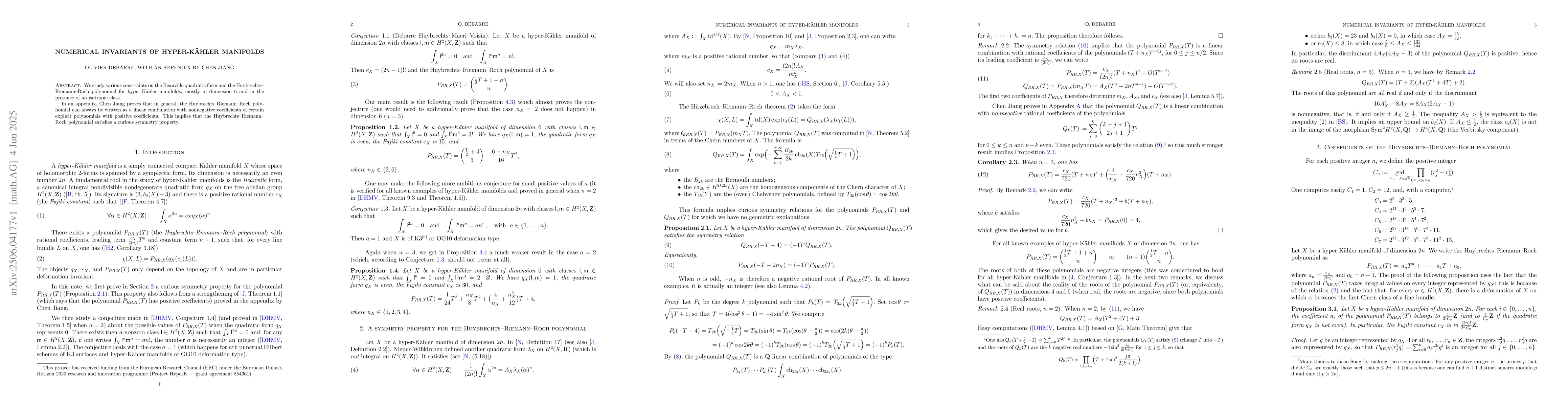 The research methodology involves studying constraints on the Beauville quadratic form and the Huybrechts-Riemann-Roch polynomial for hyper-Kähler manifolds, with a focus on dimensions 6 and those with an isotropic class.