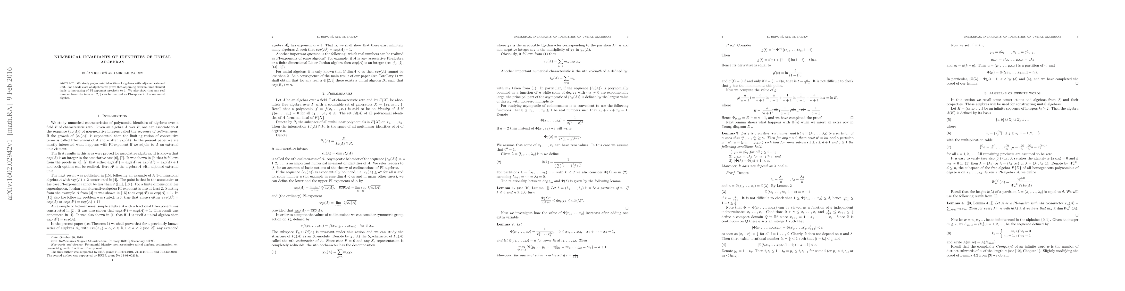 We study polynomial identities of algebras with adjoined external unit. For a wide class of algebras we prove that adjoining external unit element leads to increasing of PI-exponent precisely to 1. We also show that any real number from the interval [2,3] can be realized as PI-exponent of some unital algebra.