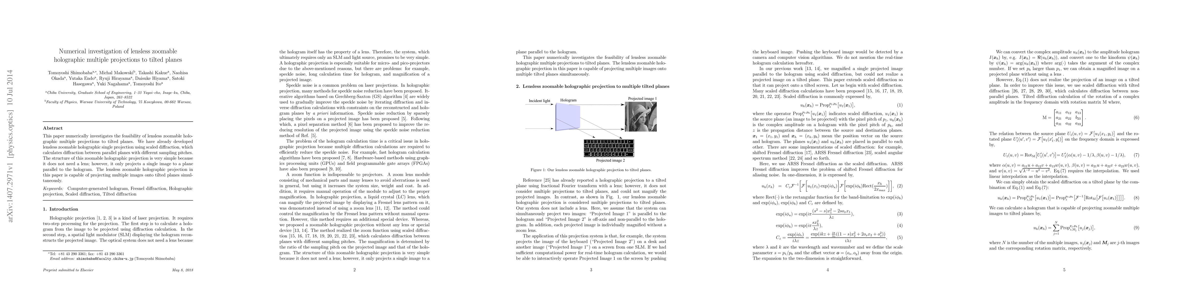 This paper investigates a new method for creating lensless zoomable holographic projections that can display multiple images on tilted planes simultaneously. The study builds upon existing work in scaled diffraction to enable simultaneous projection of multiple images.