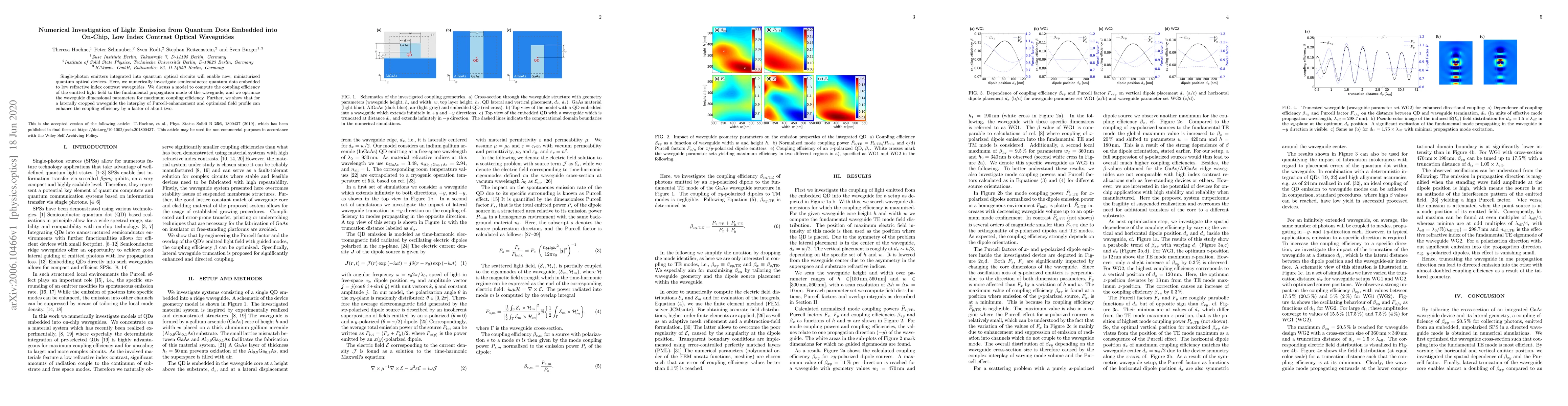 This study numerically investigates the light emission from quantum dots embedded in low index contrast optical waveguides, focusing on optimizing waveguide dimensions for maximum coupling efficiency. It demonstrates that Purcell-enhancement and optimized field profiles in laterally cropped waveguides can double the coupling efficiency.