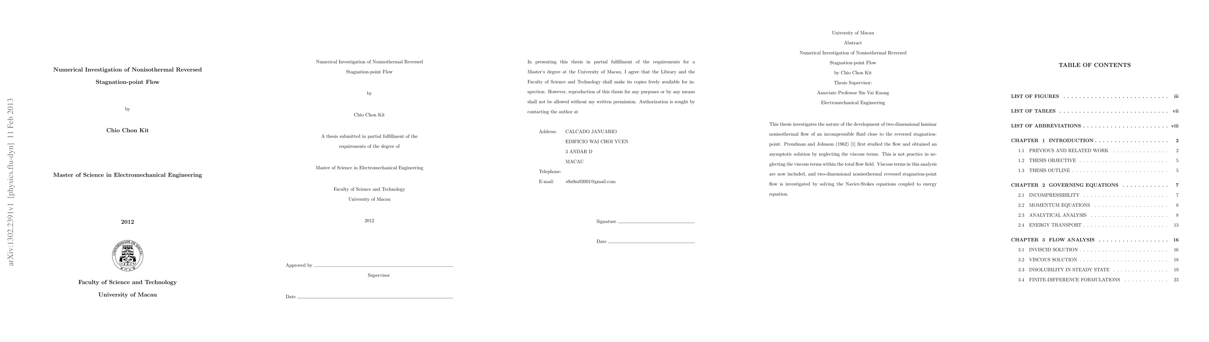 This thesis investigates the nature of the development of two-dimensional laminar nonisothermal flow of an incompressible fluid close to the reversed stagnation-point. Proudman and Johnson (1962) \cite{proudman1962boundary} first studied the flow and obtained an asymptotic solution by neglecting the viscous terms. This is not practice in neglecting the viscous terms within the total flow field. Viscous terms in this analysis are now included, and two-dimensional nonisothermal reversed stagnation-point flow is investigated by solving the Navier-Stokes equations coupled to energy equation.