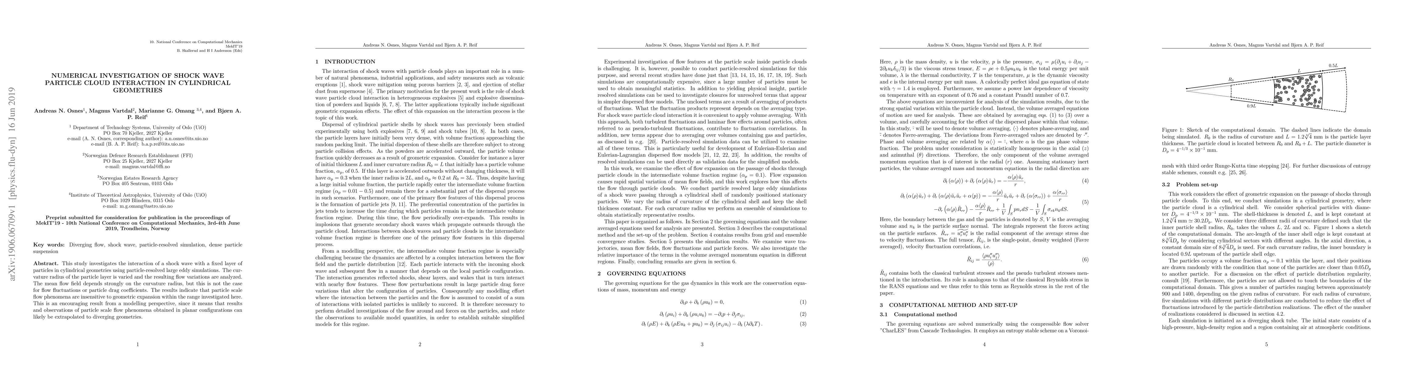 Researchers studied how shock waves interact with particle clouds in cylindrical shapes, finding that flow variations depend on curvature radius but not particle scale phenomena.