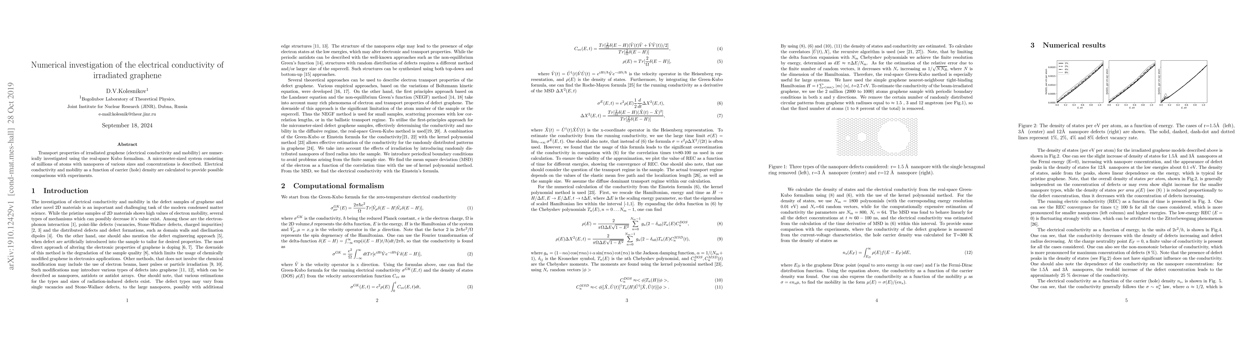 Researchers used numerical simulations to study graphene's electrical conductivity after irradiation, finding a relationship between carrier density and mobility, which can inform experimental comparisons.
