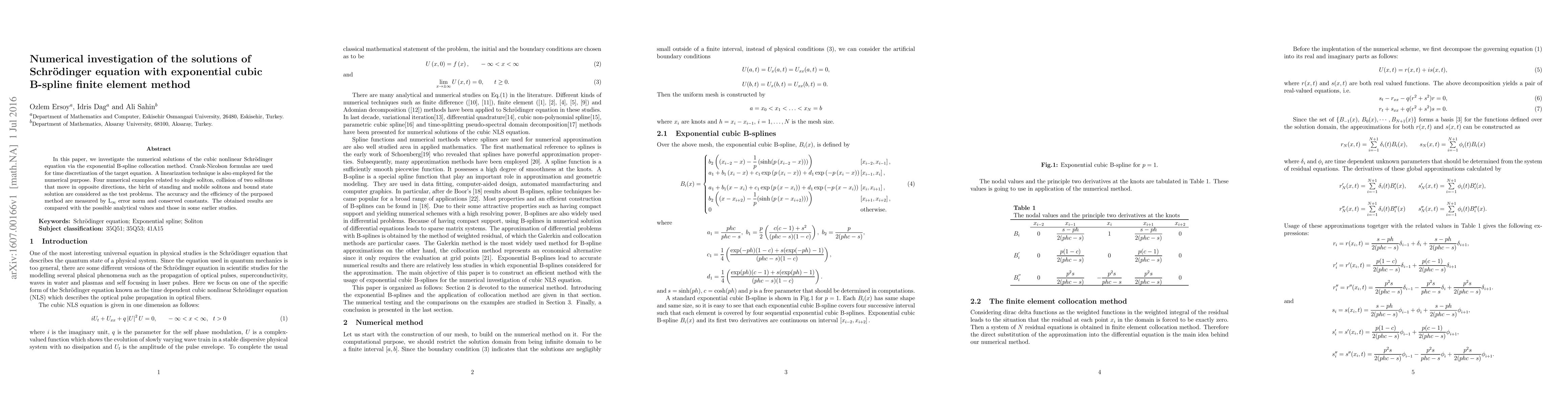 This paper explores numerical solutions of the cubic nonlinear Schrödinger equation using an exponential cubic B-spline finite element method, employing Crank-Nicolson formulas for time discretization and linearization techniques. The method's accuracy and efficiency are evaluated through various test problems and comparisons with analytical and prior numerical results.