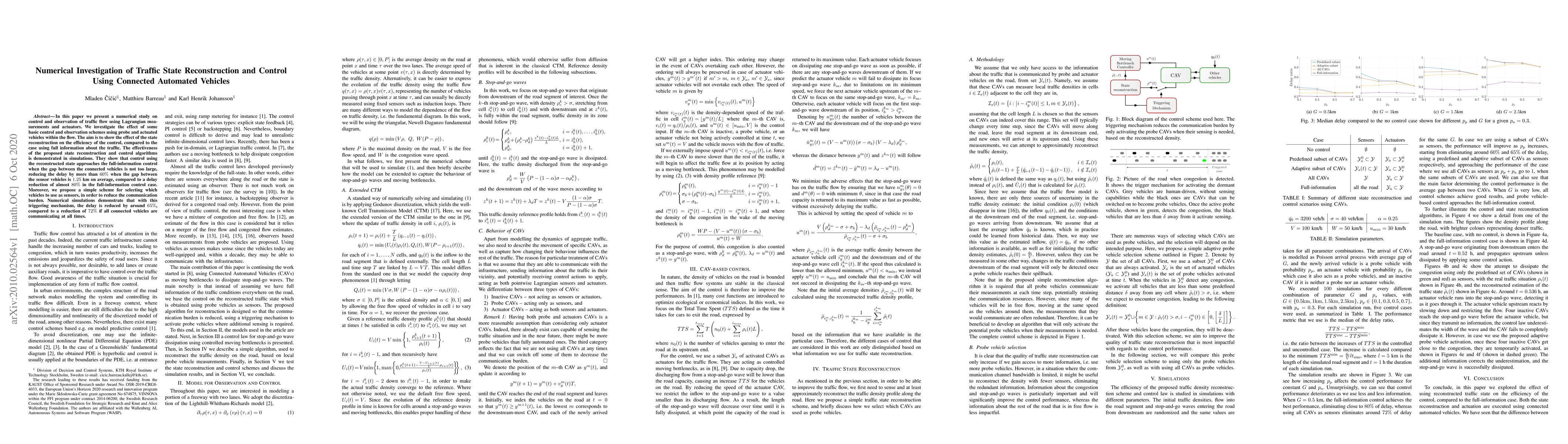 This study investigates the control of traffic flow using connected automated vehicles, showing that state reconstruction approaches full information control with significant delay reductions, especially when sensor vehicle gaps are not too large.