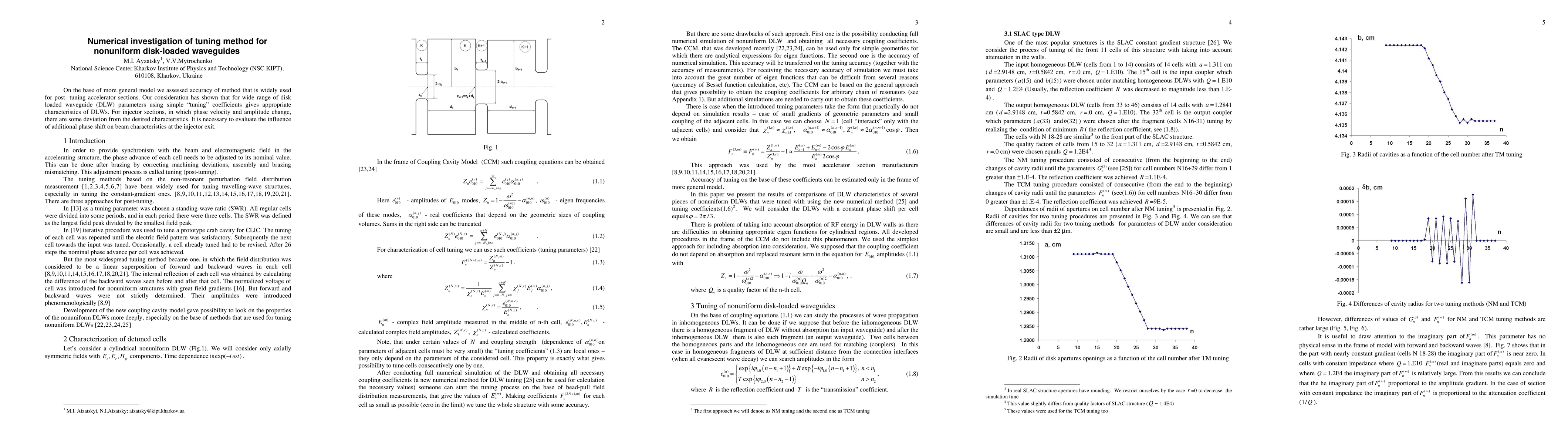 On the base of more general model we assessed accuracy of method that is widely used for post- tuning accelerator sections. Our consideration has shown that for wide range of disk loaded waveguide (DLW) parameters using simple tuning coefficients gives appropriate characteristics of DLWs. For injector sections, in which phase velocity and amplitude change, there are some deviation from the desired characteristics. It is necessary to evaluate the influence of additional phase shift on beam characteristics at the injector exit.