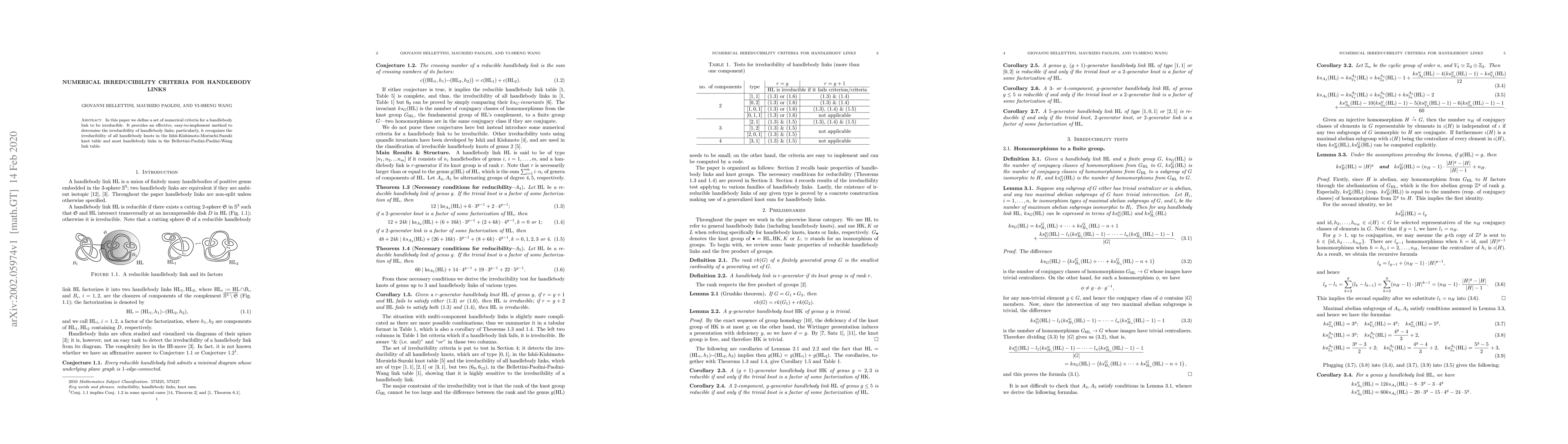 This paper introduces numerical criteria to determine the irreducibility of handlebody links, offering a practical method that successfully identifies the irreducibility of all handlebody knots in the Ishii-Kishimoto-Moriuchi-Suzuki table and most links in the Bellettini-Paolini-Paolini-Wang table.