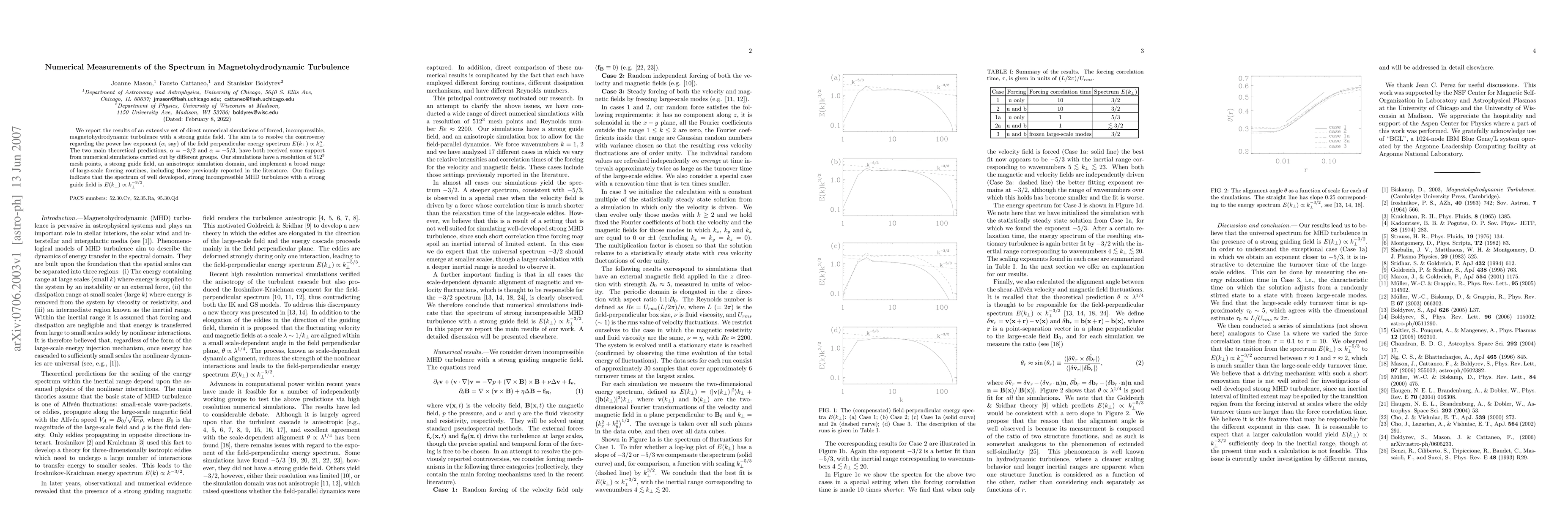 This study resolves the debate on the power law exponent of the field perpendicular energy spectrum in magnetohydrodynamic turbulence, finding that the exponent is -3/2, based on high-resolution simulations with a strong guide field and anisotropic domain. This result supports one of the theoretical predictions and contrasts with previous conflicting numerical findings.