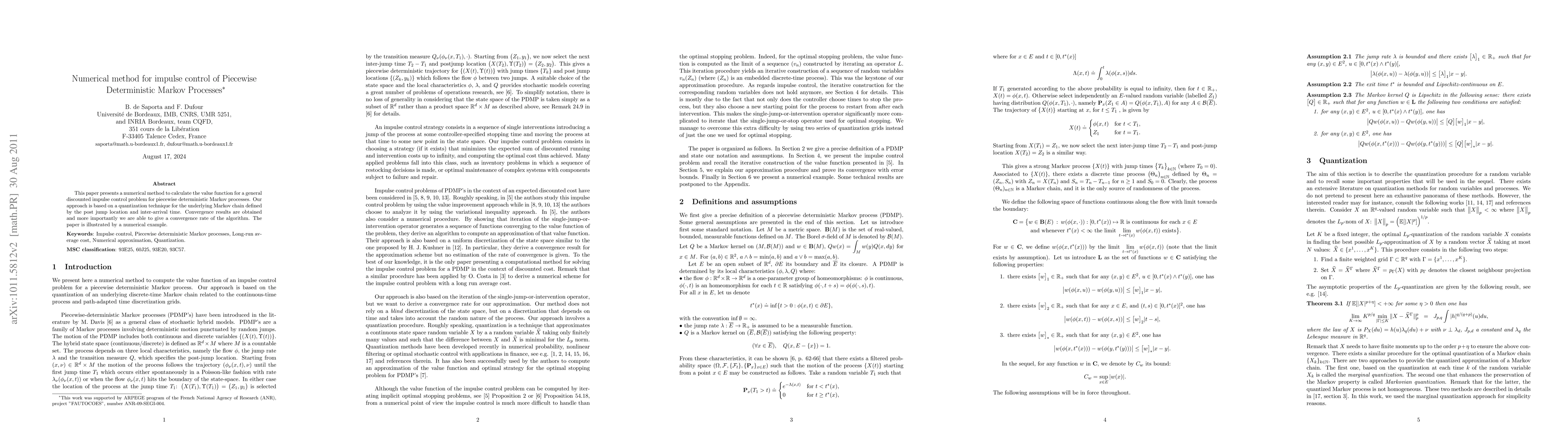 This paper introduces a numerical method for solving discounted impulse control problems in piecewise deterministic Markov processes using a quantization technique. The method provides a convergence rate and is demonstrated through a numerical example.