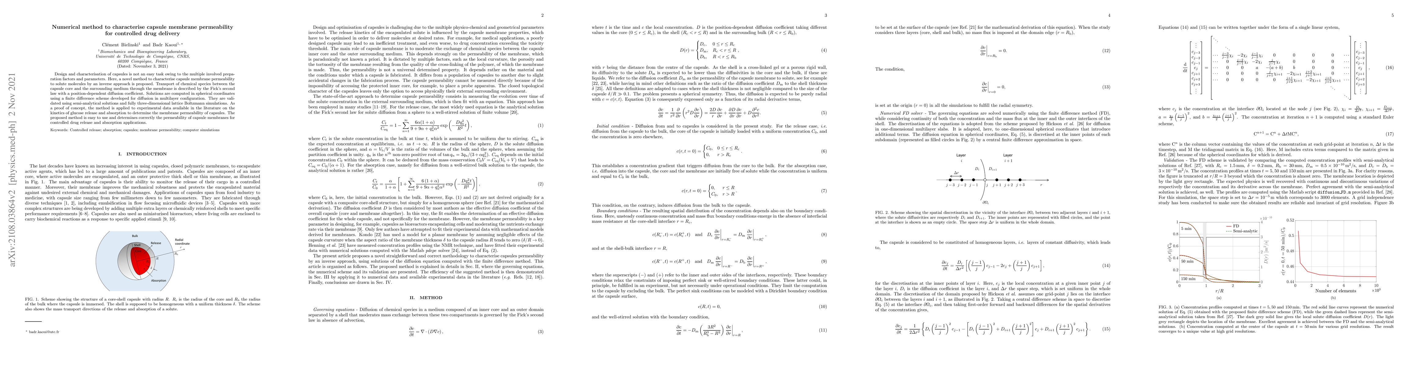 This paper proposes a novel numerical method using an inverse approach to characterize capsule membrane permeability for controlled drug delivery. The method employs Fick's second law with a position-dependent diffusion coefficient, solved via a finite difference scheme in spherical coordinates, validated against semi-analytical solutions and lattice Boltzmann simulations. The method is demonstrated to accurately determine membrane permeability using experimental glucose release data.