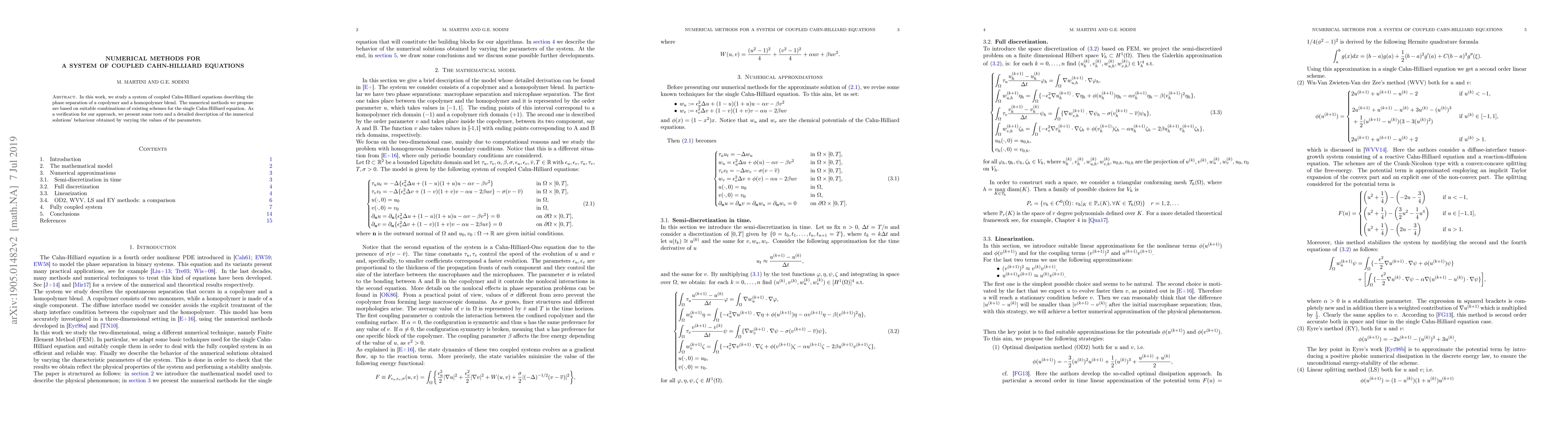 This paper proposes numerical methods for solving a system of coupled Cahn-Hilliard equations used to model phase separation in copolymer and homopolymer blends. The methods are tested and validated by analyzing the behavior of numerical solutions under varying parameter values.