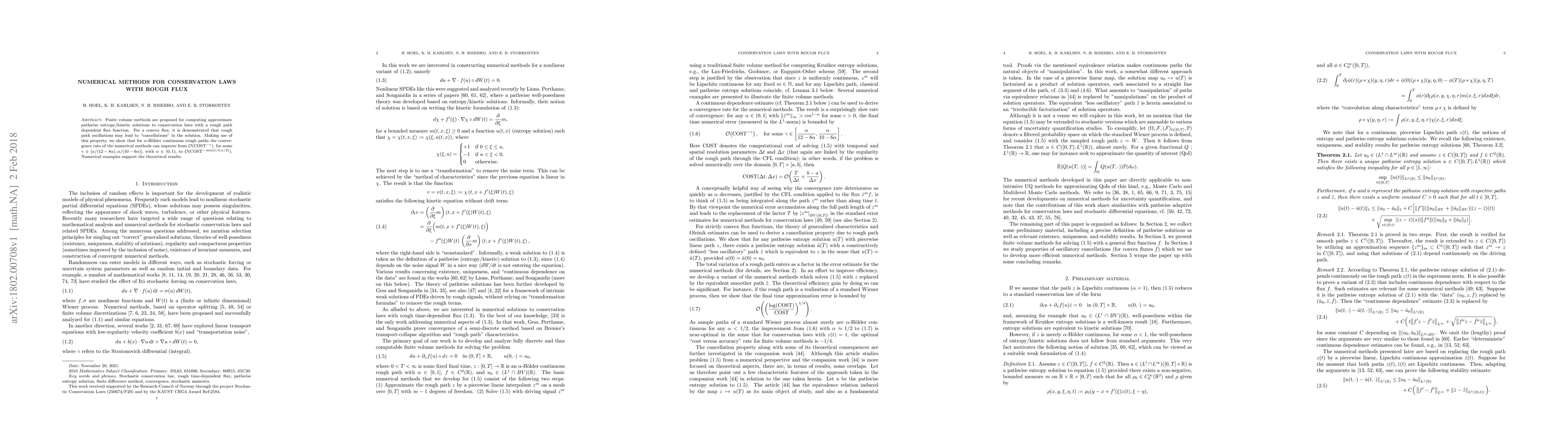 This paper proposes finite volume methods for solving conservation laws with rough path-dependent fluxes, demonstrating improved convergence rates due to "cancellations" in rough path oscillations, achieving higher accuracy for $\alpha$-Hölder continuous rough paths. Numerical examples validate the theoretical improvements.