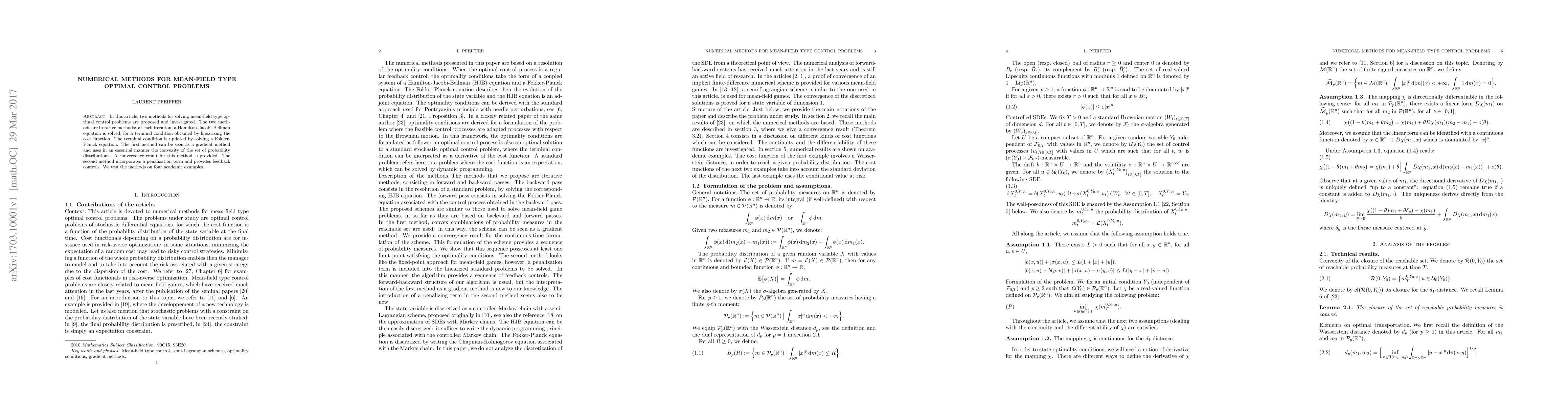 Two methods for solving mean-field-type optimal control problems are proposed, using iterative Hamilton-Jacobi-Bellman equations and Fokker-Planck equations to optimize cost functions with probability distributions.