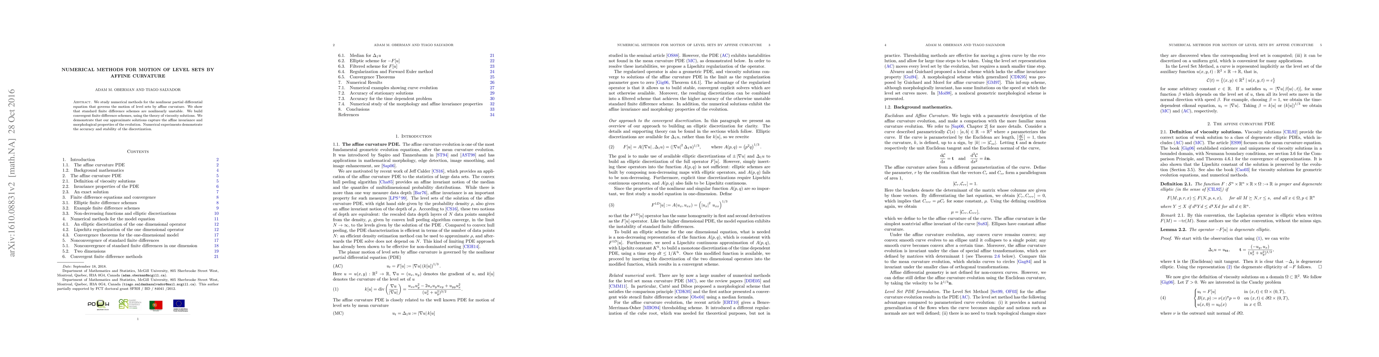 Researchers developed numerical methods to simulate the motion of level sets with affine curvature, addressing instability issues with traditional finite difference schemes and demonstrating accurate capture of evolution properties.
