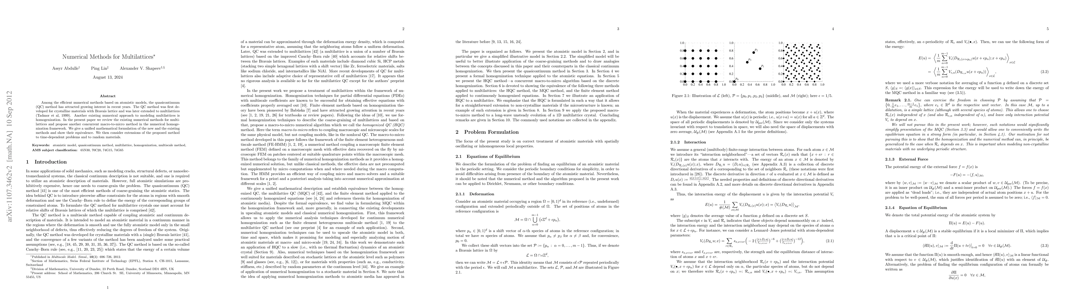 This paper reviews existing numerical methods for multilattices, including the quasicontinuum method and homogenization, and proposes a new concurrent macro-to-micro method within the homogenization framework. It provides a unified mathematical formulation and demonstrates the equivalence of the new method with existing ones, also extending it to time-dependent and random material problems.
