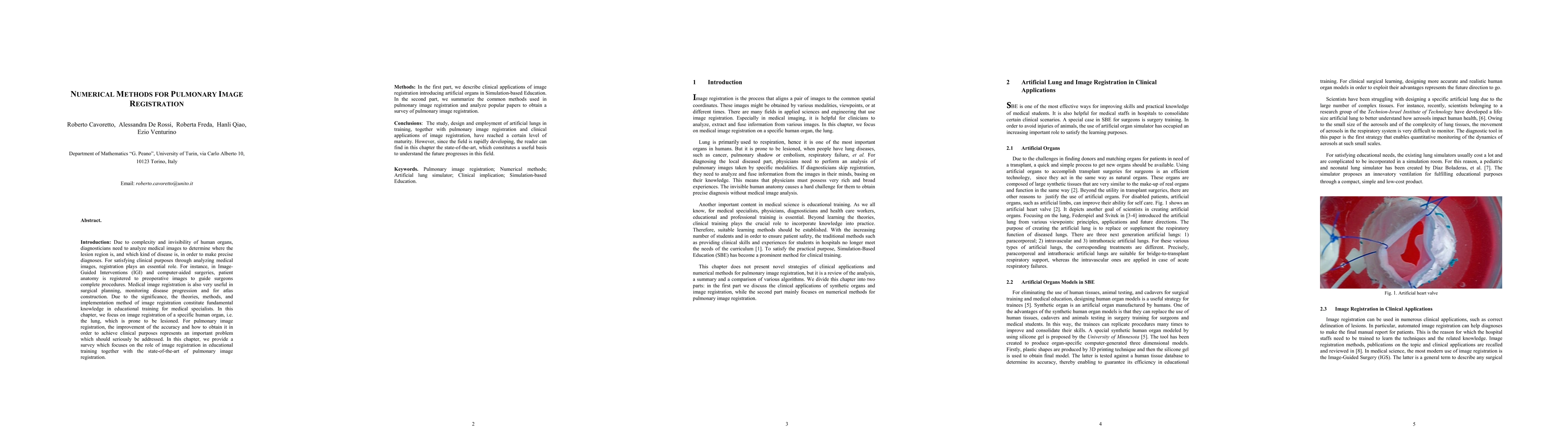 Due to complexity and invisibility of human organs, diagnosticians need to analyze medical images to determine where the lesion region is, and which kind of disease is, in order to make precise diagnoses. For satisfying clinical purposes through analyzing medical images, registration plays an essential role. For instance, in Image-Guided Interventions (IGI) and computer-aided surgeries, patient anatomy is registered to preoperative images to guide surgeons complete procedures. Medical image registration is also very useful in surgical planning, monitoring disease progression and for atlas construction. Due to the significance, the theories, methods, and implementation method of image registration constitute fundamental knowledge in educational training for medical specialists. In this chapter, we focus on image registration of a specific human organ, i.e. the lung, which is prone to be lesioned. For pulmonary image registration, the improvement of the accuracy and how to obtain it in order to achieve clinical purposes represents an important problem which should seriously be addressed. In this chapter, we provide a survey which focuses on the role of image registration in educational training together with the state-of-the-art of pulmonary image registration. In the first part, we describe clinical applications of image registration introducing artificial organs in Simulation-based Education. In the second part, we summarize the common methods used in pulmonary image registration and analyze popular papers to obtain a survey of pulmonary image registration.