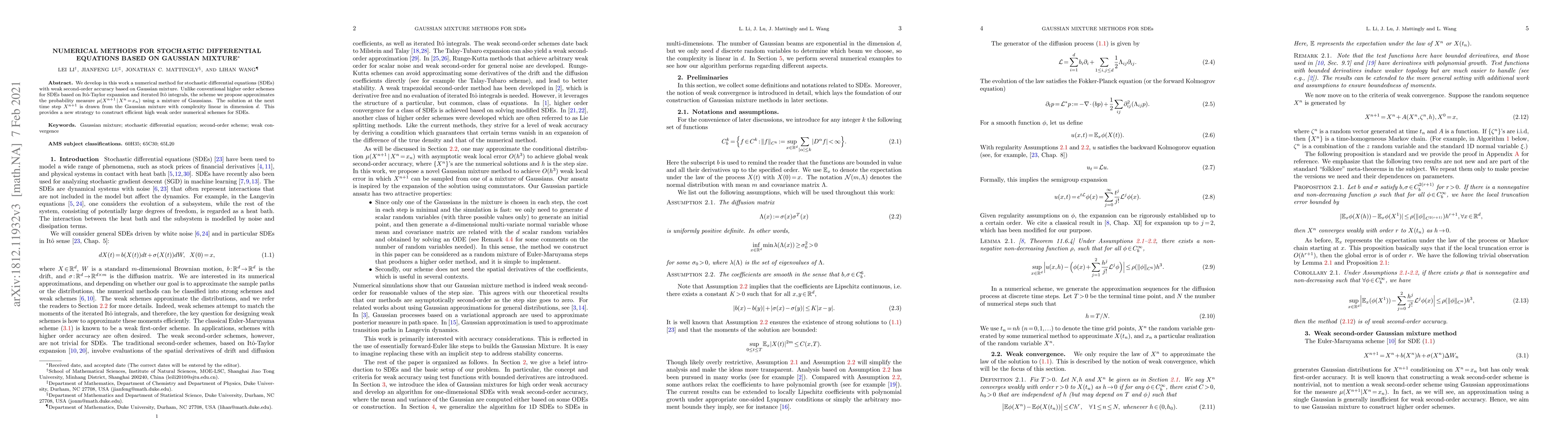 We develop in this work a numerical method for stochastic differential equations (SDEs) with weak second order accuracy based on Gaussian mixture. Unlike the conventional higher order schemes for SDEs based on It\^o-Taylor expansion and iterated It\^o integrals, the proposed scheme approximates the probability measure $\mu(X^{n+1}|X^n=x_n)$ by a mixture of Gaussians. The solution at next time step $X^{n+1}$ is then drawn from the Gaussian mixture with complexity linear in the dimension $d$. This provides a new general strategy to construct efficient high weak order numerical schemes for SDEs.