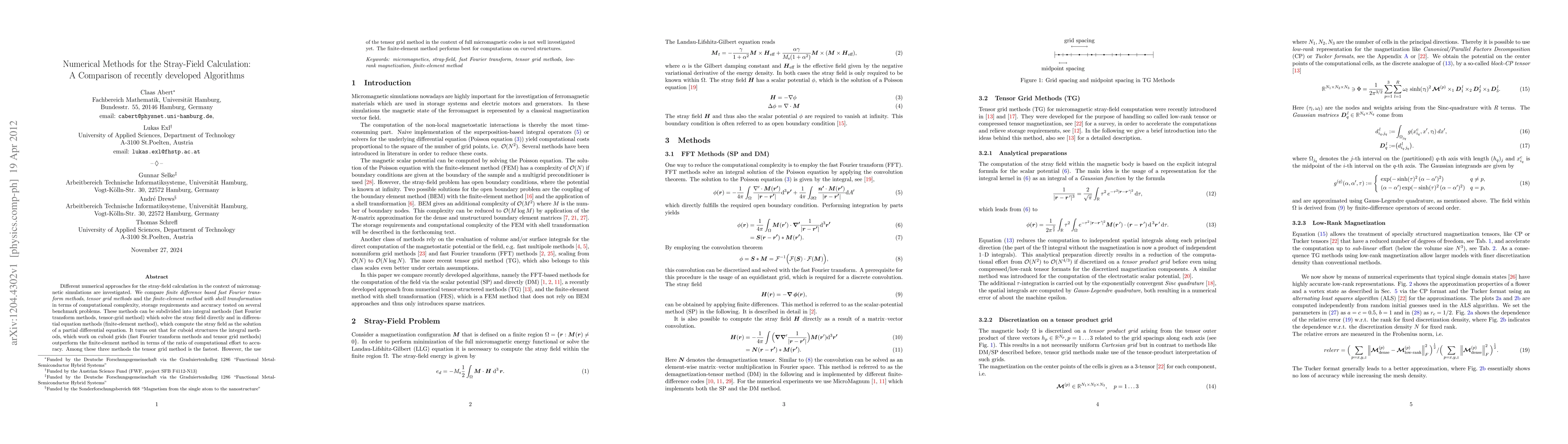 Researchers compared three numerical methods for calculating stray fields in micromagnetic simulations, finding that tensor grid methods outperform finite-element methods on cuboid structures, but the latter excel on curved shapes.